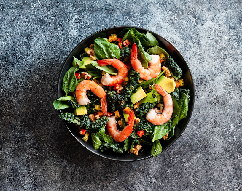 Shrimp is a nutritional powerhouse and is loaded with protein, vitamin B12, selenium, and much more. Paired with the healthy monounsaturated fats found in avocado, this makes for a very healthy salad. Add an extra dab of butter to the shrimp to get an even more flavorful salad.