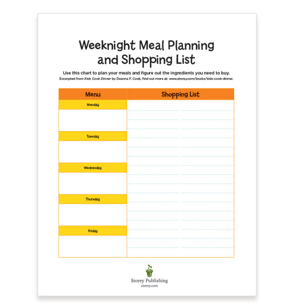 Storey – Kids Cook Dinner Weeknight Meal Planning and Shopping List
