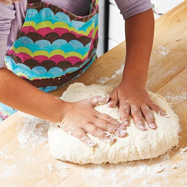 3. Dust your hands with flour and knead the dough until it is smooth and elastic, about 5 minutes.
