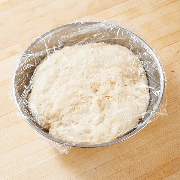 4. Rub the inside of a clean bowl with olice oil. Place the dough in the bowl and turn to coat with oil. Cover with plastic wrap and let it rise for about 30 minutes.