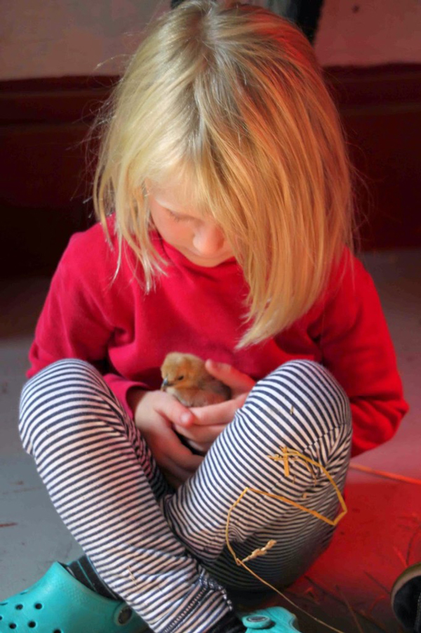 The best way to learn what your chickens are saying is through observation. Simply pull up a seat, watch, and listen. Some of the first sounds you’ll get to know are the peeps of happy and content chicks; they express themselves with peppy little peeping sounds as they wander around the brooder exploring their environment. Loud and deliberate peeping signals that the chicks are too cold or that something else is wrong. My favorite chick sounds are pleasure trills. As you watch those new baby chicks drift off to sleep in their brooder, you will hear quiet, subtle, melodic sounds that would be easy to mistake for a cat’s purr. Don’t be mistaken — these are pleasure trills, a chick’s expression of utter contentment.