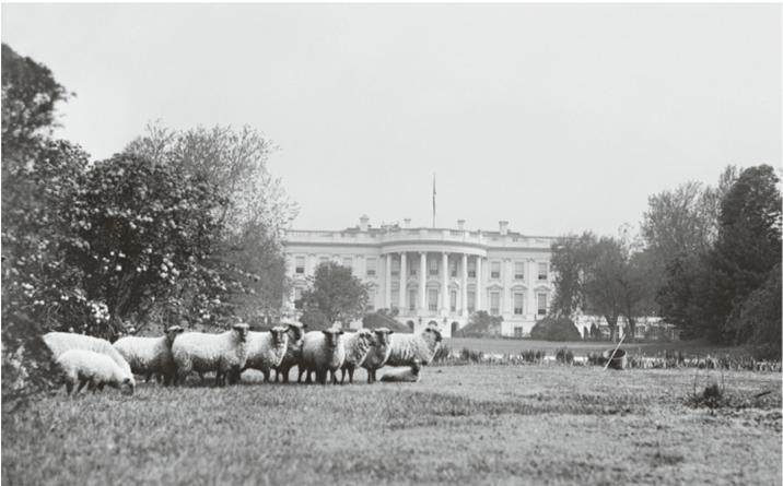 In World War I, a herd of 20 Hampshire sheep took up residence on the South Lawn of the White House to keep the grass closely cropped. Wool was in high demand, and the wool shorn from the White House sheep was auctioned as a novelty item to benefit the American Red Cross.