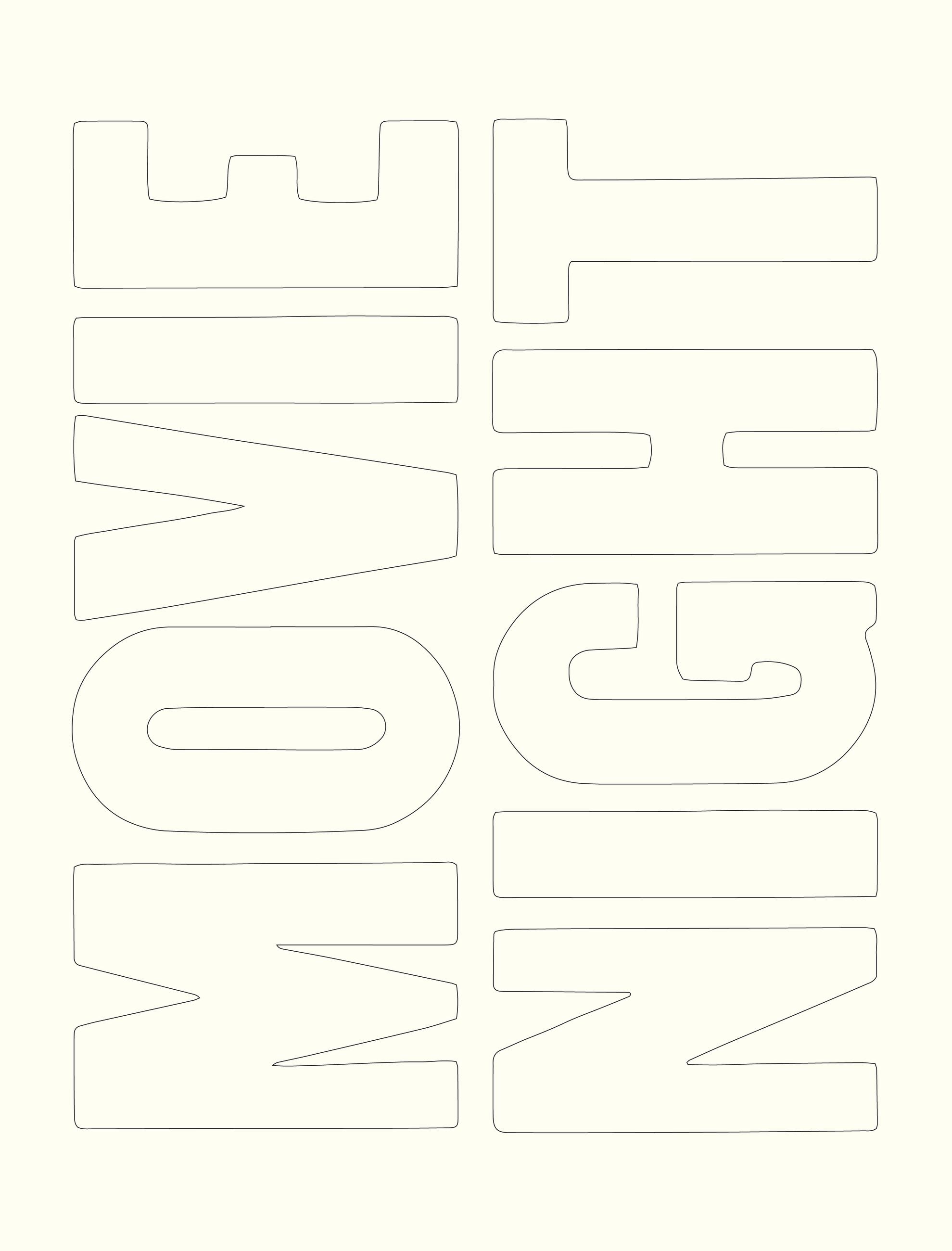 The posters feature large vintage block letter typography and a black-and-white palette, inviting the reader to decorate them however they choose—with colored pencils, tissue paper, markers, ink pens, watercolor, collage paper. (Suggested materials and examples of finished posters will be provided inside.)