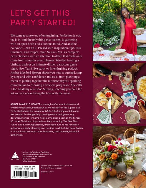 Welcome to a new era of entertaining. Perfection is out, joy is in, and the only thing that matters is gathering with an open heart and a curious mind. And anyone—everyone!—can do it. Packed with inspiration, tips, lists, timelines, and recipes, Your Turn to Host is a complete party playbook with an attention to detail that could only come from a master event planner. Whether hosting a birthday bash or an intimate dinner, a raucous game night, New Year’s Eve party, or Friendsgiving potluck, Amber Mayfield Hewett shows you how to succeed, step-by-step and with confidence and ease, from planning a menu to putting together the ultimate playlist, sparking conversation to choosing a timeless party favor. She calls it the Anatomy of a Good Shindig, teaching you both the art and science of being the host with the most.