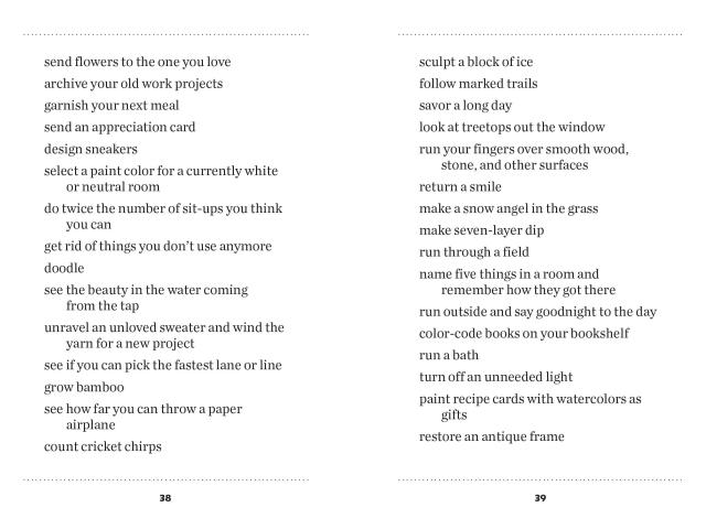 Put down your phone, close the lid on your laptop, and get back in touch with the wonders of the world around you. With thousands of ideas for simple, beautiful things to do instead of scrolling down the rabbit hole of cyberspace, this healing little book offers the opportunity, 5,203 times, to slow down, look up, and rediscover what makes you feel nourished and grounded as a human being. With illustrations throughout by Scot Ritchie.