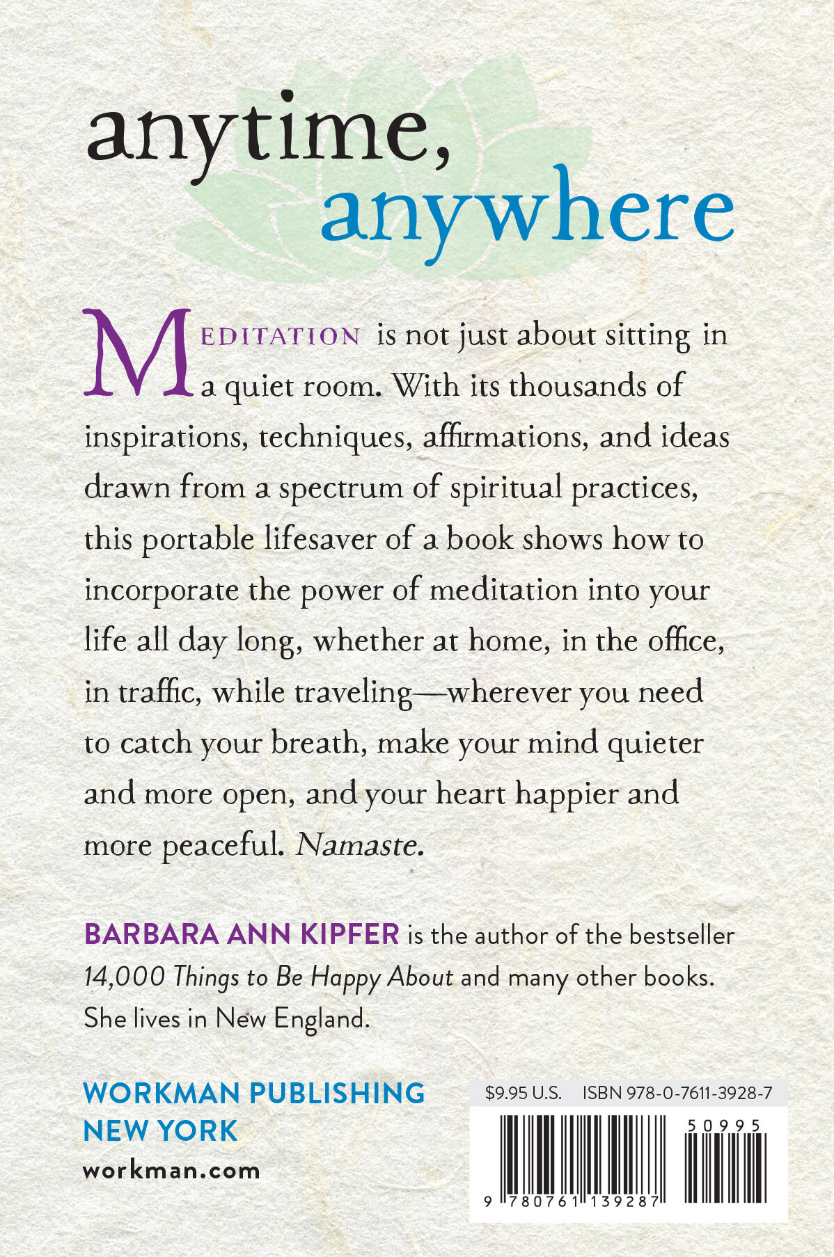 Meditation is not just about sitting in a quiet room. With its thousands of inspirations, techniques, affirmations, and ideas drawn from a spectrum of spiritual practices, this portable lifesaver of a book shows how to incorporate the power of meditation into your life all day long, whether at home, in the office, in traffic, while traveling—wherever you need to catch your breath, make your mind quieter and more open, and your heart happier and more peaceful.