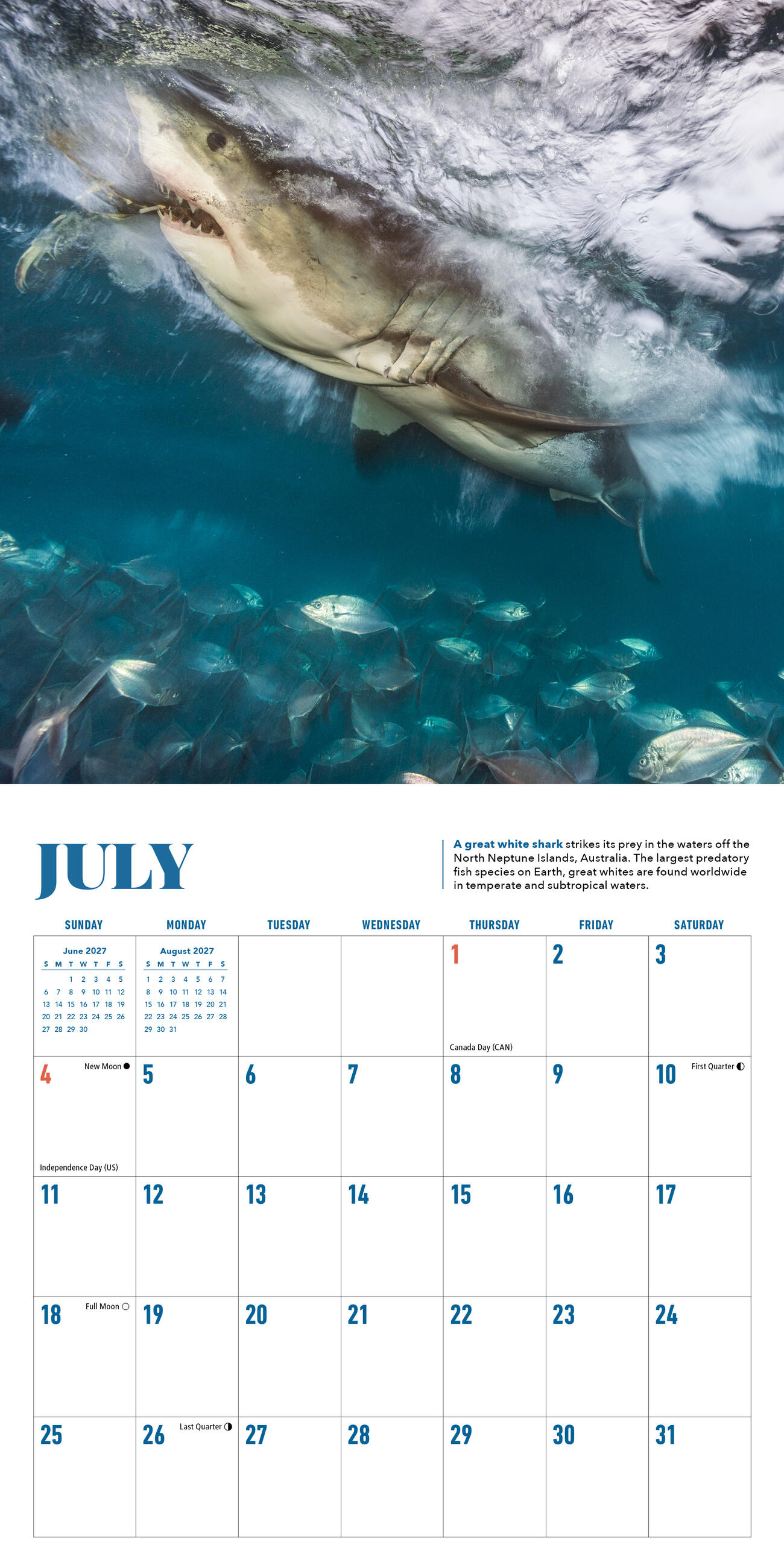 - MINI CALENDAR, BIG IMPACT: Perfect for shark lovers of all ages. The 7″ x 7″ mini size makes it a great fit for cubicles, lockers, and other small spaces.