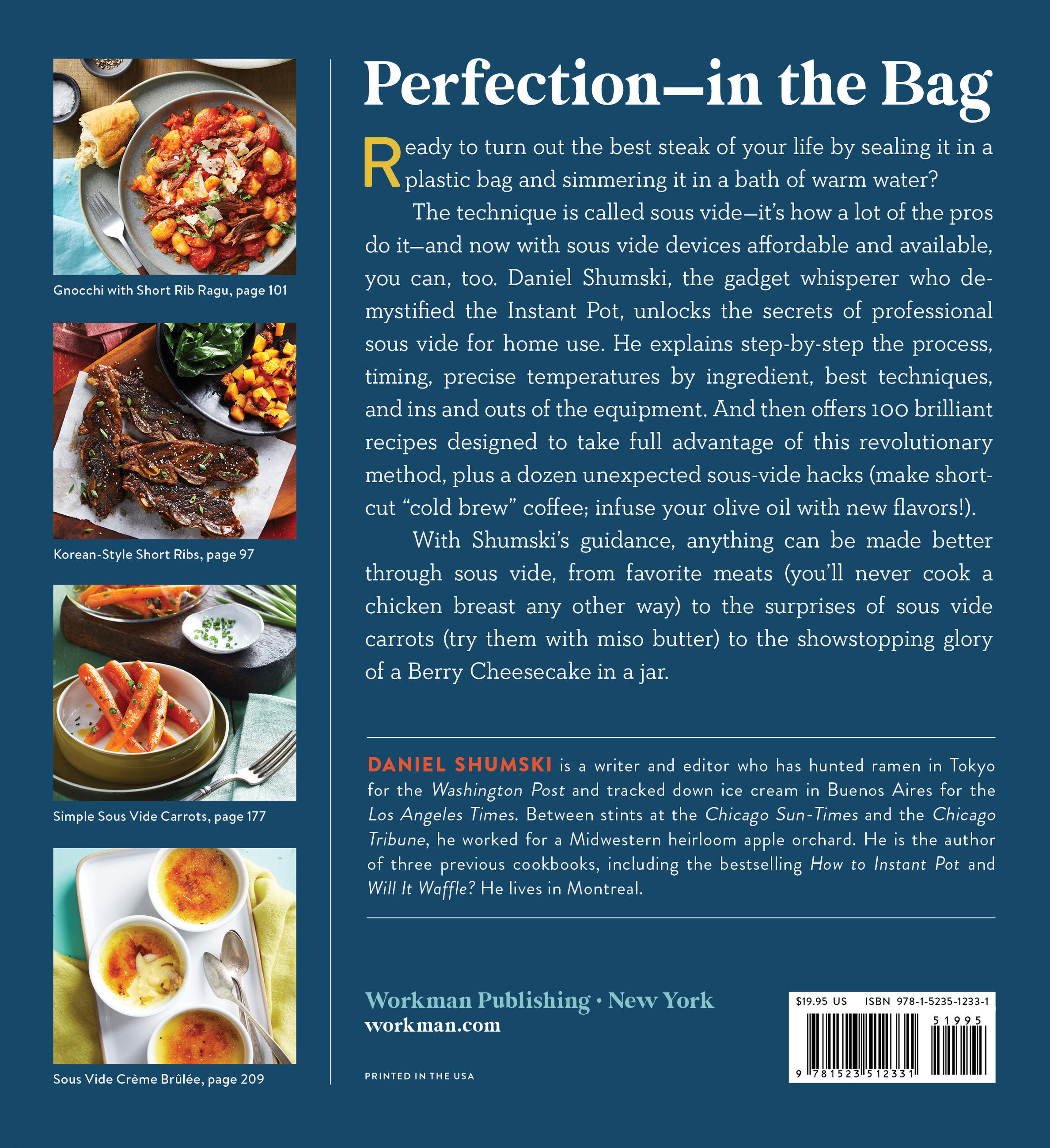 The technique is called sous vide— it’s how a lot of the pros do it—and now with sous vide devices affordable and available, you can too. Daniel Shumski, the gadget whisperer who demystified the Instant Pot, unlocks the secrets of professional sous vide for home use. He explains step by step the process, timing, precise temperatures by ingredient, best techniques, and ins and outs of the equipment. And then offers 100 brilliant recipes designed to take full advantage of this revolutionary method, plus a dozen unexpected sous-vide hacks (make short-cut “cold-brew” coffee; infuse your olive oil with new flavors!)