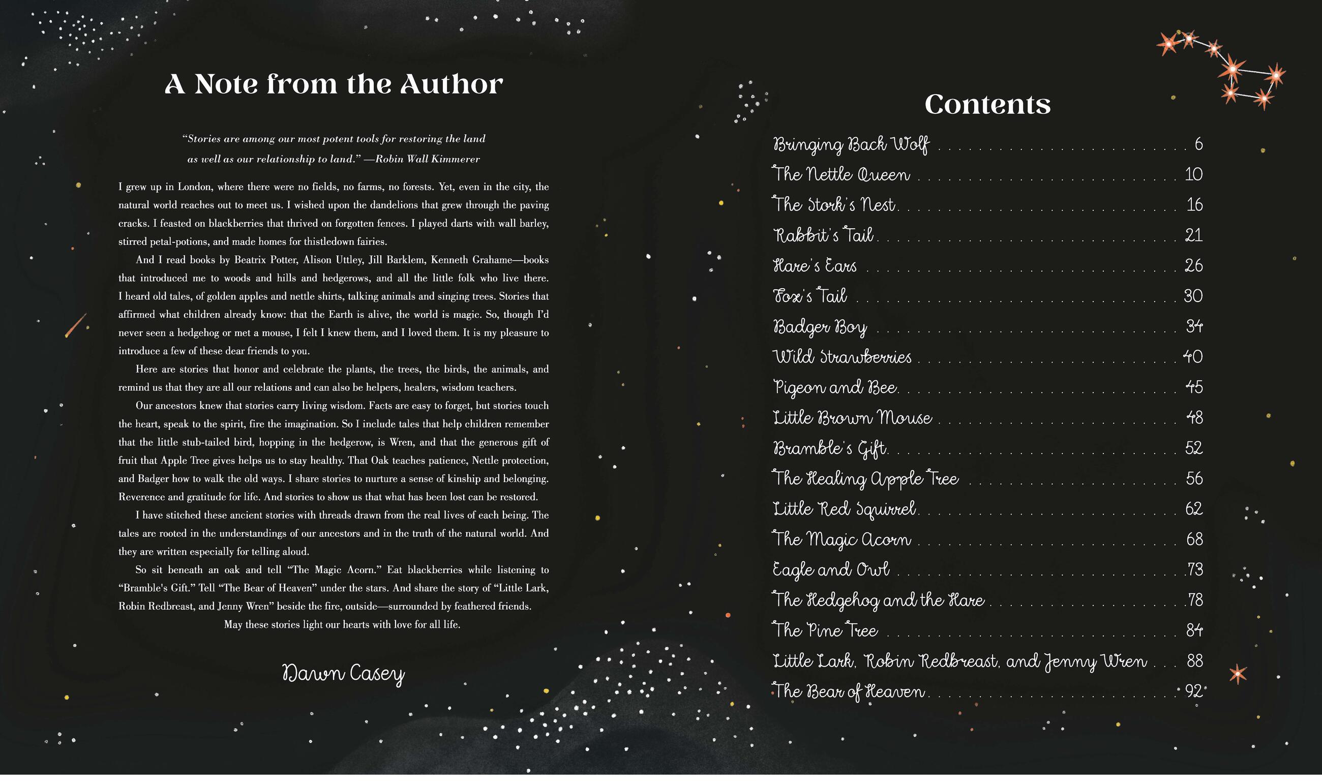 “In this contemporary retelling of folktales from around the world, Casey reminds readers of the wonder of creatures in the natural world and of what they have to teach us through their own ways of living…The artwork is crisp and contemporary, often forming borders or repeated motifs that reference classical styles of book illustrations. These folktales have a lyrical quality that makes them well suited to being read aloud, and they are bite-sized enough to have readers clamoring for another and another.”Booklist