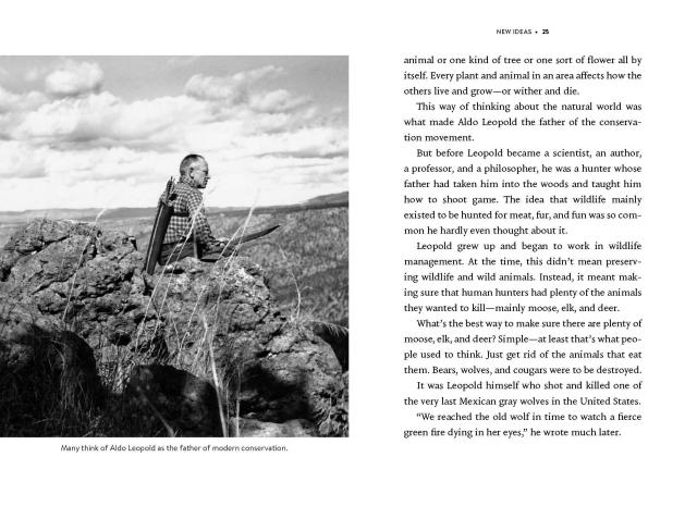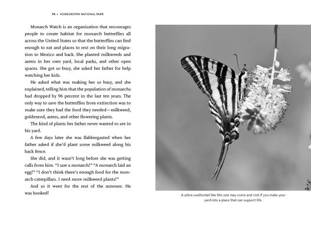 In Nature’s Best Hope (Young Readers’ Edition), Tallamy empowers kids to use their own yards to help combat the negative effects of climate change. He does so by breaking down complex concepts into simple terms and real-world examples that kids can easily grasp. Black and white photographs help further clarify concepts. In addition to sharing the science, Tallamy encourages kids to take direct action. Some of these ideas include planting an oak tree at home. If that’s too large of a task, he suggests they can plant asters—a beautiful flower whose pollen bees use to feed their young.