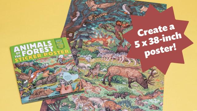 Fill in the woodland scene with forest animal stickers and learn about moose, skunks, foxes, eagles, and more amazing animals along the way. When you’ve finished the project, you’ll have a beautiful piece of art to display.