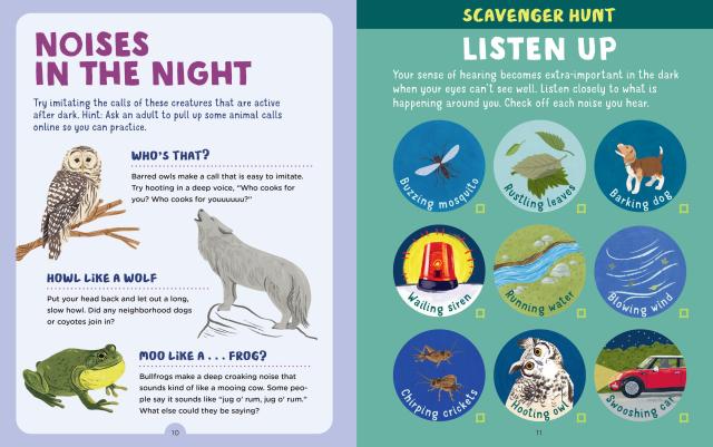 Step outside after dark and explore the outdoors! Packed with nighttime scavenger hunts, flashlight games, and field guides for nocturnal animals, insects, and birds, this nighttime activity book—complete with a real magnifying glass, stickers, and a fold-out journal—is the perfect take-along nature exploration guide for kids aged 4 to 8. In the eighth book of the Backpack Explorer series from the Editors of Storey Publishing, junior naturalists search for owls, bats, salamanders, stars, planets, and more. Backpack Explorer: Night Walk is packed with prompts and activities, including 12 interactive field guides, sensory scavenger hunts, activities such as learning about the phases of the moon, listening to the noises of the night, and looking for constellations in the sky. With a real magnifying glass, 50 stickers, and a log for recording night finds, this book is perfect for outdoor-loving kids and their nature adventures after dark.