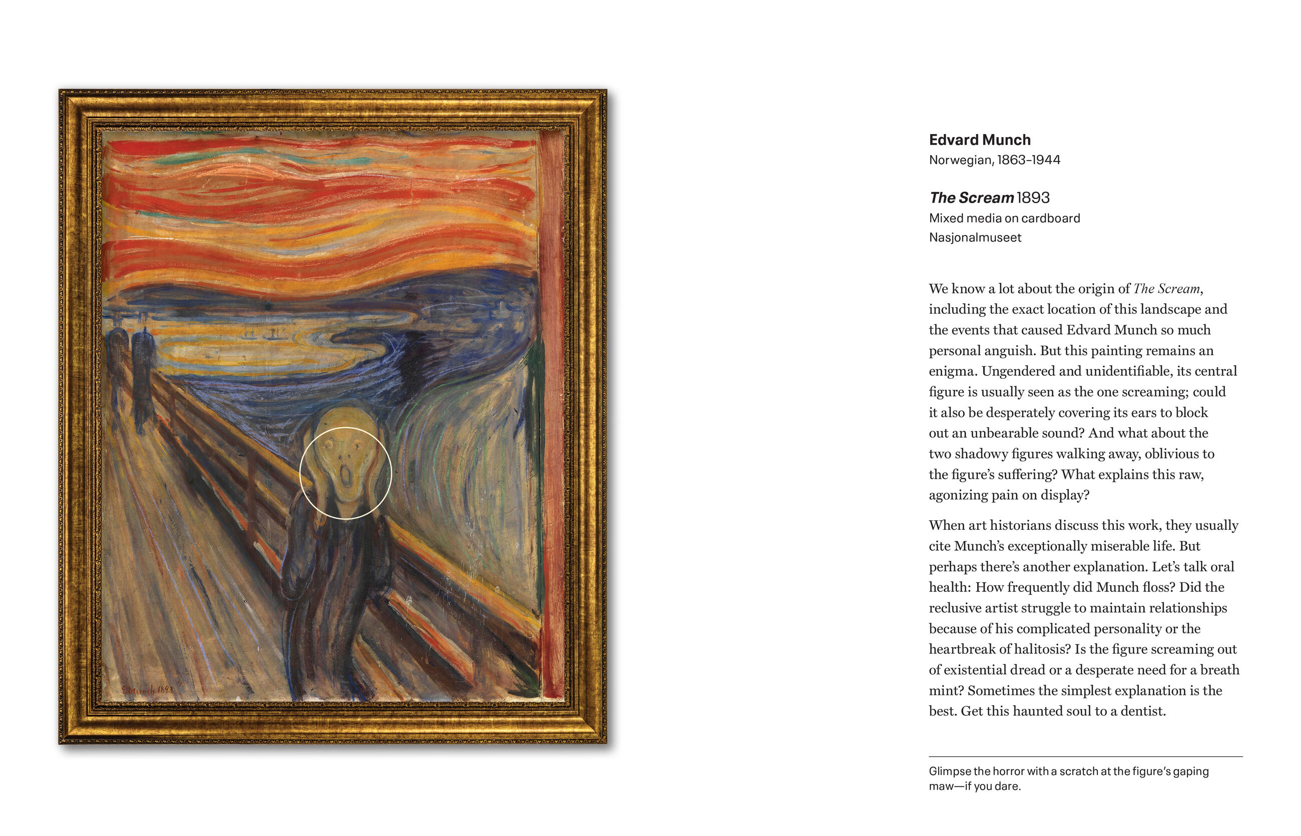 Each painting also features witty museum-style captions with unexpected facts about the artists, their works, and the stinky zeitgeists from which they flourished. Fun, funny, and splendidly tongue in cheek, it’s an irresistible gift for any art lover.