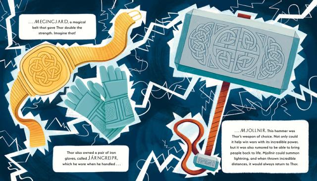 Most people know Thor for being the super strong God of Thunder who could control lightning and who rode around on a magical chariot pulled by goats. But once upon a time, Thor was just a little boy. Sure, he was the son of an almighty god, and he was a ferocious warrior, but in lots of ways he was just like you. He liked late-night snacks and playing games, and he had a really annoying friend, Loki. But he grew up, he grew stronger, he found a hammer, and he had all sorts of adventures. This is his story. Packed with facts from Norse mythology and comic-like illustrations, this is a humorous and informative “biography” of the God of Thunder, perfect for young and emerging readers.