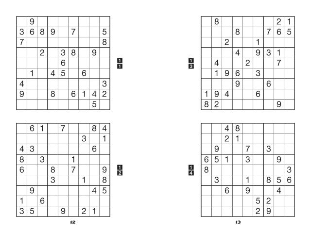 Just when it seemed safe to go back into the puzzle section of the bookstore … here comes another collection of the hardest sudoku known to humankind. The newest four volumes of this bestselling series range from Level 1 to Level 4, increasing in difficulty as they go. In Level 1, solvers will encounter 242 puzzles difficult enough to make them say, “Wait … this is the easiest level?” After the book is complete, three more levels await those who are daring enough to continue!