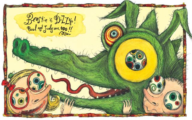 Meet Paul and Judy. And meet their pet, Beastie. Paul and Judy used to be so mean to Beastie. They pulled Beastie’s hair, tickled Beastie’s feet. So, Beastie feastied! Good thing Paul and Judy learned their lesson (stuck inside the belly of the Beastie).
