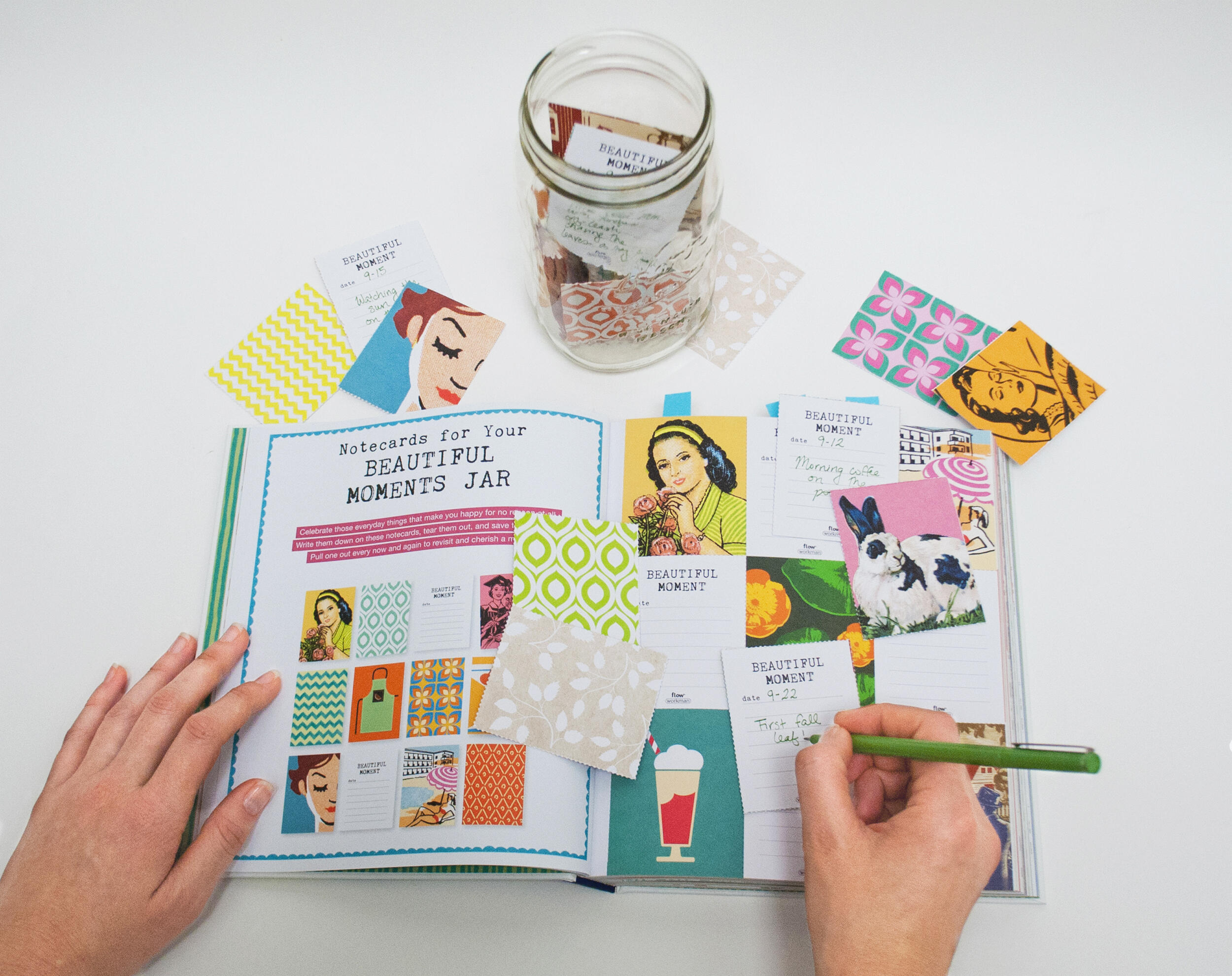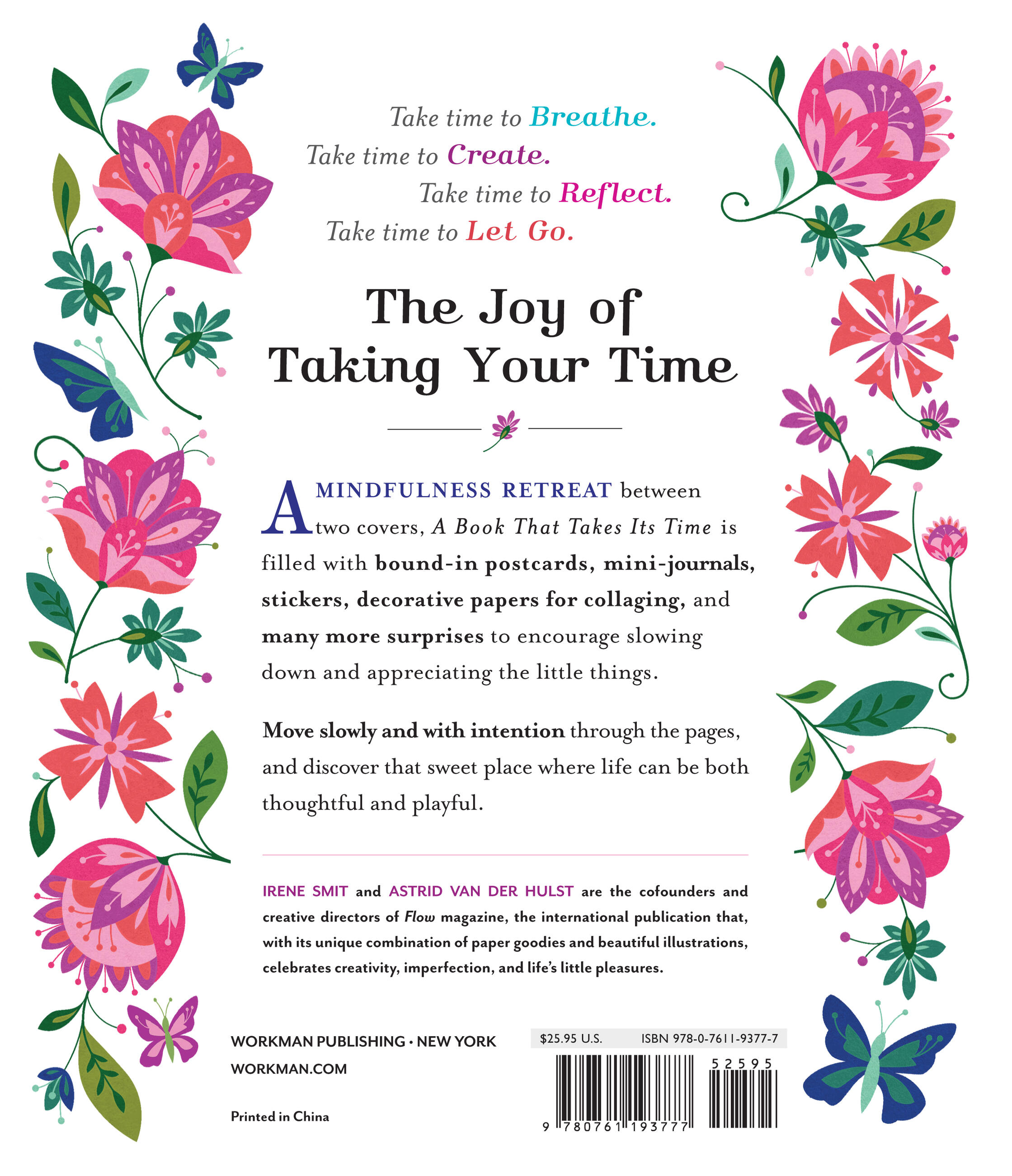 Read about the benefits of not multitasking, then turn to “The Joy of One Thing at a Time Notebook” tucked into the pages. After a short piece on the power of slowing down, fill in the designed notecards for a Beautiful Moments jar. Make a personal timeline. Learn the art of hand-lettering. Dig into your Beginner’s Mind. Embrace the art of quitting. Take the writing cure. And always smile. Move slowly and with intention through A Book That Takes Its Time, and discover that sweet place where life can be both thoughtful and playful.
