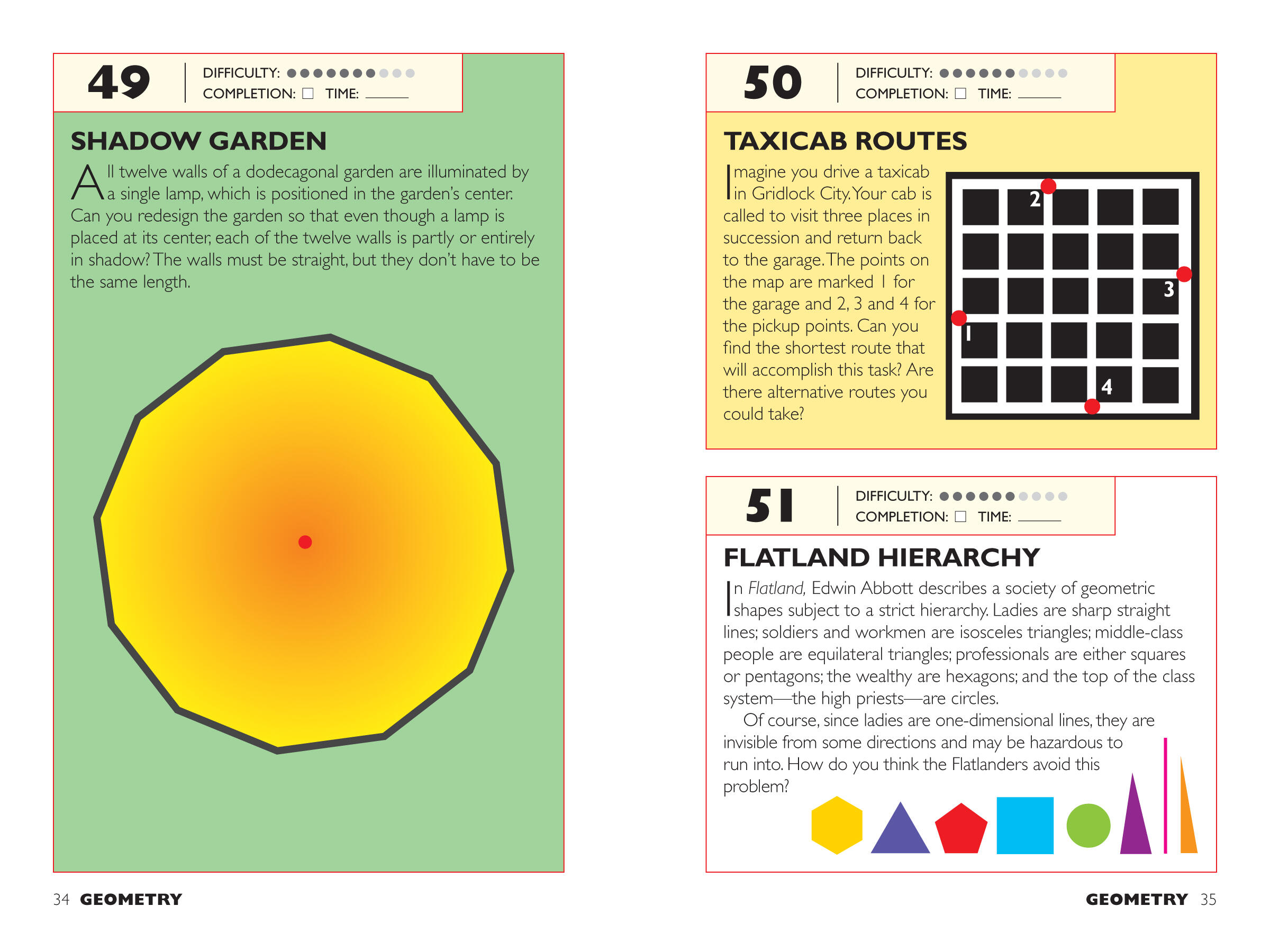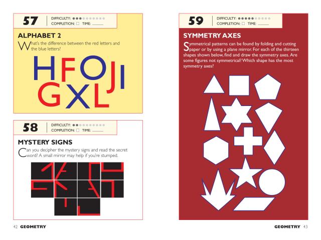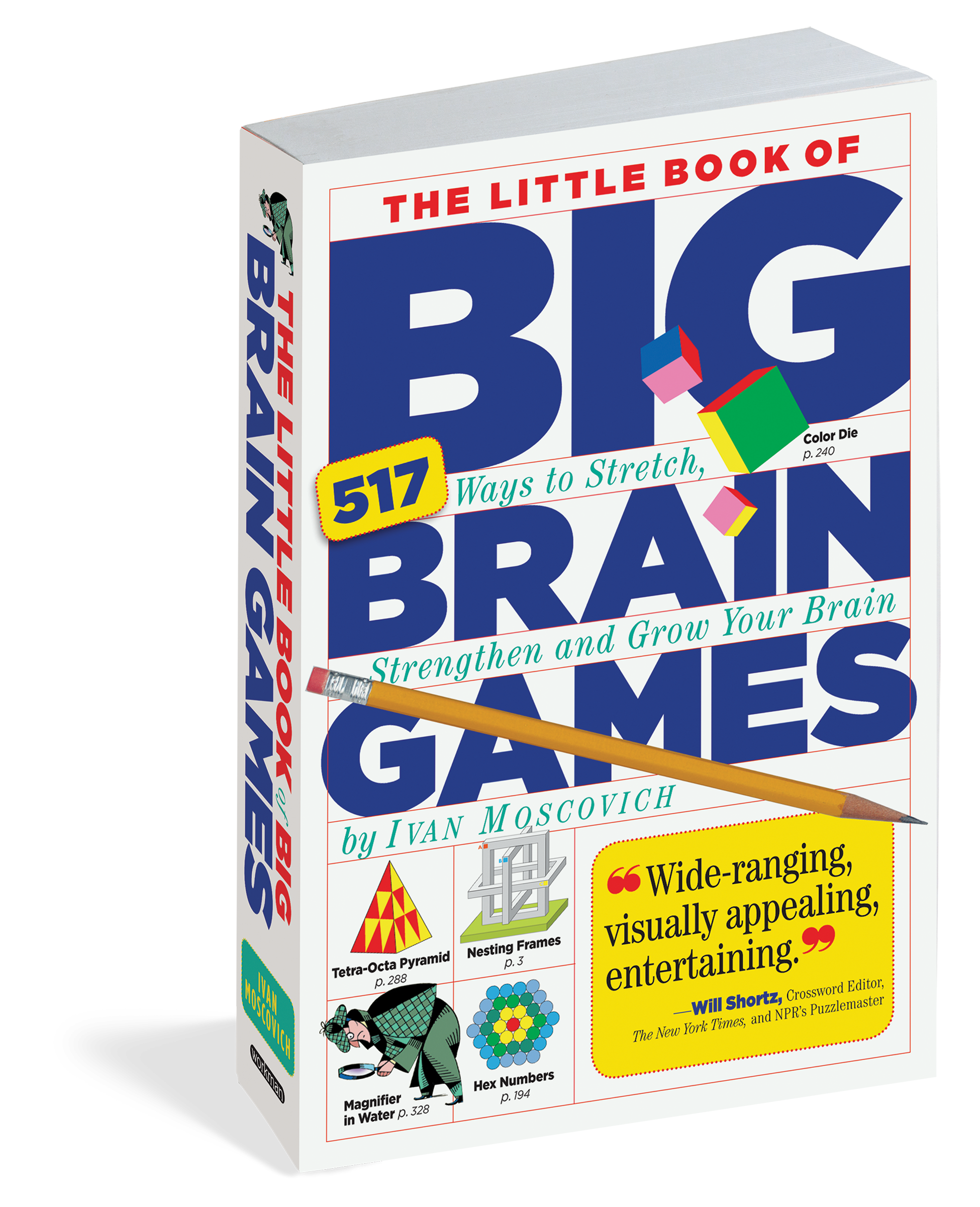 Here are mental games, visual challenges, logic posers, riddles, and illusions, each designed to stretch neurons and give the brain a workout—all in a format that will fit in your pocket. The puzzles (both original and mind-boggling adaptations of classics) are rated in difficulty from level one to ten, but even the easiest are guaranteed to make the solver feel smart.