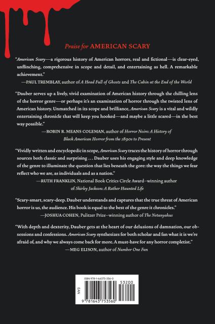 "The American character defies description in many cases, but we are an obvious nation when it comes to our fears. With depth and dexterity, Dauber gets at the heart of our delusions of damnation, our obsessions, and confessions. American Scary synthesizes for both scholar and fan what it is we're afraid of, and why we always come back for more. A must-have for any horror completist."Meg Elison, author of Number One Fan