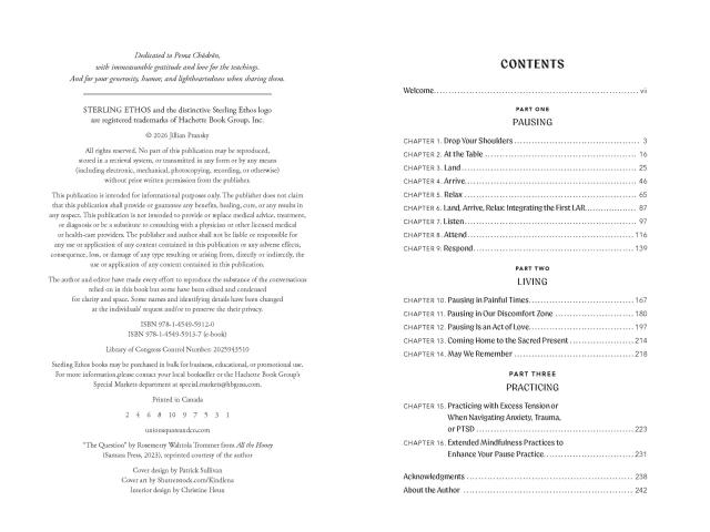 "In this helpful and easy-to-read book, Jillian Pransky shows how pausing is more than rest—it’s an act of self-compassion. By calming the body, resetting the mind, and reconnecting with ourselves, we create the spaciousness needed for resilience, clarity, and genuine well-being."Kristin Neff, PhD, author of Self-Compassion