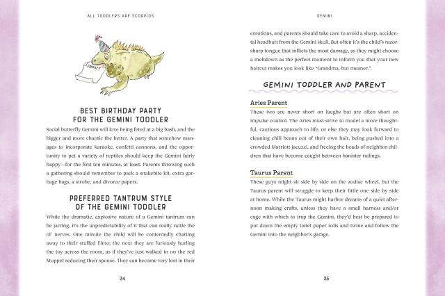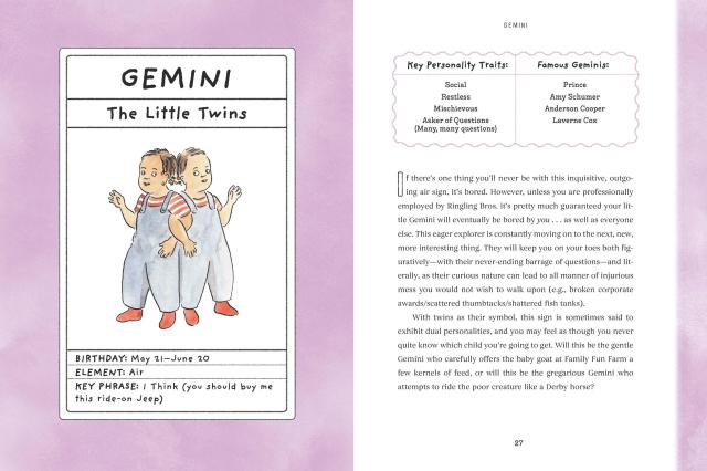 This is a book that lets parents laugh at the sheer insanity of sharing their home with someone who cackles when you break your toe and insists on wearing oven mitts to bed.Blending parental exasperation with cosmic insight, Gohmann breaks down toddler personalities by zodiac sign—offering a starry-eyed (and slightly frazzled) look at the joys and mysteries of raising tiny humans. The profiles of each zodiac sign include sections dedicated to best (and worst!) toddler playdate matches; toddler’s preferred music, snacks, and toys; parent-child zodiac compatibility; and hilarious illustrations throughout from cartoonist Emily Flake. Whether you are raising a tenacious Taurus, a balanced Libra, or, yes, a hell-raising Scorpio, this is a book that lets parents laugh at the sheer insanity of sharing their home with a tiny terror.