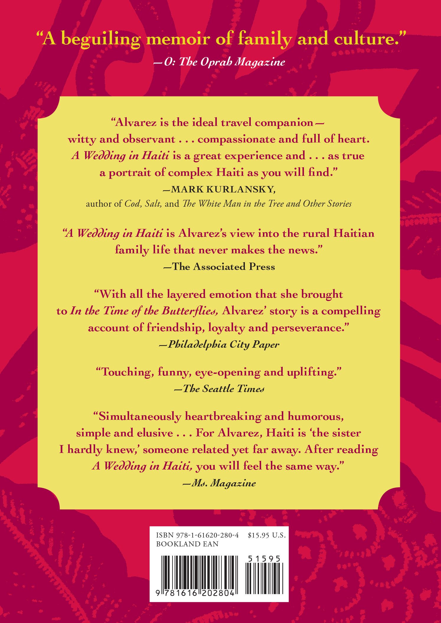 B>Examiner.com“A glimpse into the heart of a complex country during a tumultuous time.”B>National Geographic Traveler “This beautiful memoir from Alvarez is a look at Haiti through an unlikely friendship . . . Wonderfully told.”B>New York Post“A memoir with the structure and impact of a novel . . . It is hopeful, folksy, sobering and graceful with good story-telling.”B>Asheville Citizen-Times“Touching, funny, eye-opening and uplifting.” B>The Seattle Times“A compelling account of friendship, loyalty and perseverance.”B>Philadelphia Citypaper“A deeply personal story of family and connection that casts a light on larger issues of global community and the need for unity, compassion, and understanding.”B>Shelf Awareness, starred review “Beautifully told and moving, Alvarez's memoir serves to introduce readers to all Haiti once was — and what it could be again.”B>SheKnows.com “Warm, funny and compassionate.”B>Kirkus Reviews “A moving homage to the Haitian people.” B>Publishers Weekly "[Alvarez's] unaffected prose and her warm and caring voice make this intimate introduction to a troubled country one many readers will savor."