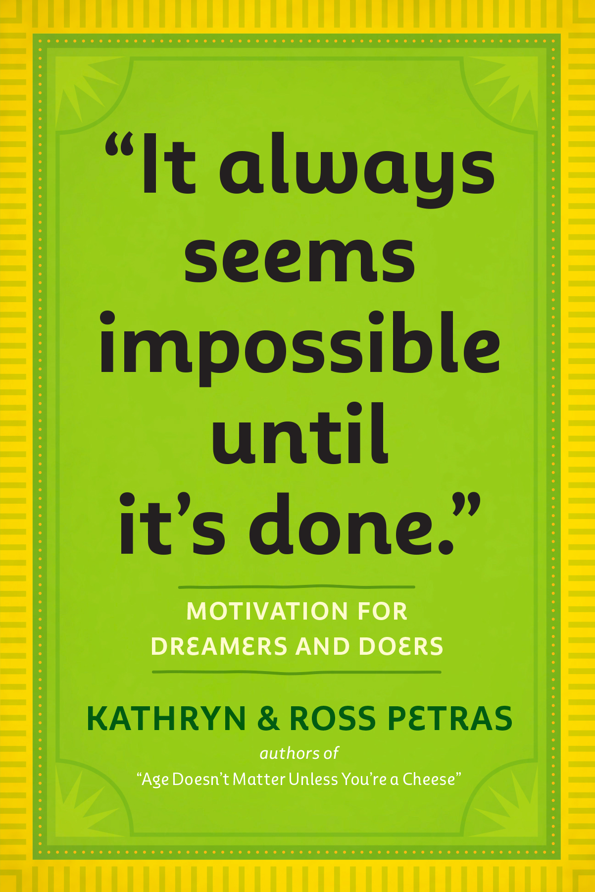 Kathryn and Ross Petras are masters at choosing and delivering just the right words. Their books—such as “Age Doesn’t Matter Unless You’re a Cheese” and “Dance First. Think Later.”—and bestselling calendar, The 365 Stupidest Things Ever Said, have over 5.2 million copies in print. Now comes a book for dreamers and doers, plus writers, entrepreneurs, graduates, artists, future movers and shakers. Collecting the hard-won, brilliantly expressed advice from pioneers who have paved the way, including everyone from Rumi to Steve Jobs, Michelangelo to Oprah to Tina Fey, “It Always Seems Impossible Until It’s Done” is like a rousing locker-room speech, inspiring courage, commitment, and perseverance.
