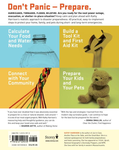 “If you have ever doubted that it was absolutely essential to prepare for a crisis or natural disaster, look around — it is one of our most urgent projects. With Kathy Harrison's reassuring help and thoughtful guidance, you can do this, and keep your loved ones safe and well.” — Sharon Astyk, author of Making Home