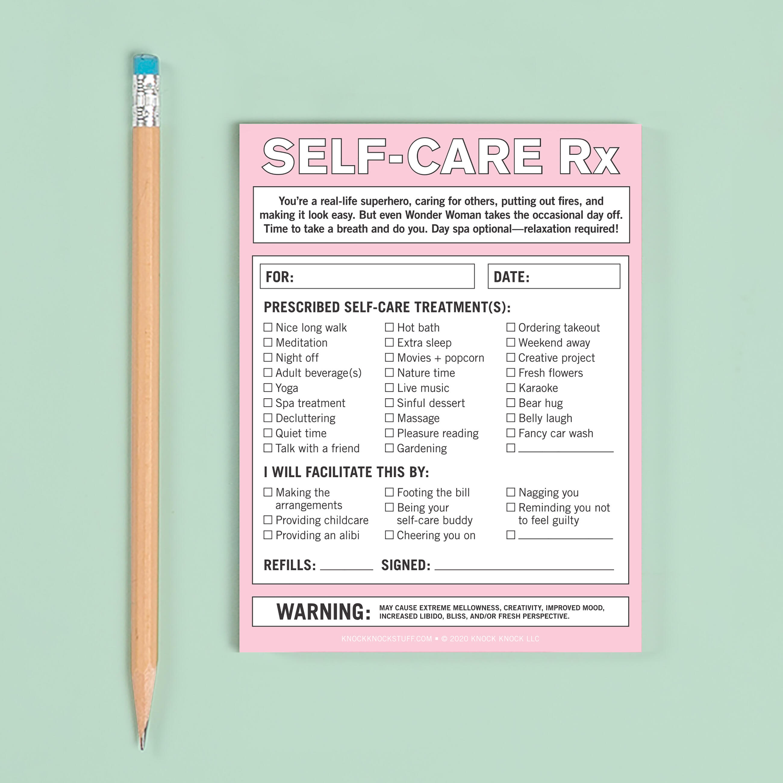 It’s time to stop, drop, and TLC yourself, people! We know self-care is vital, but sometimes it’s hard to prioritize ourselves without feeling a bit selfish. This pad offers permission—nay, a prescription!—to actually carve out time to nurture ourselves. Think of it as a gentle but official-ish push for friends, loved ones, and yourself. Now let’s get this self-caring party started, okay?