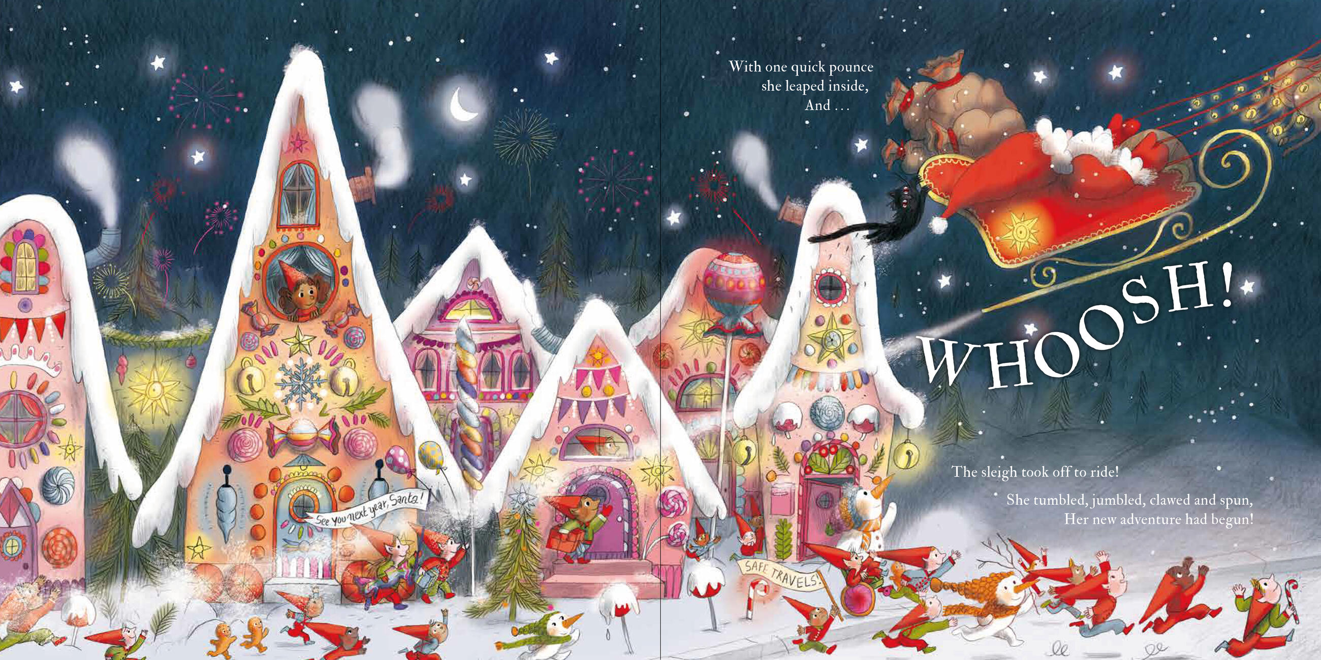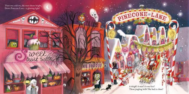 Come one, come all, come gather round to hear the legend of Mrs. Claws. On Scary Street lives one small cat. She does her best to scare and fright—but nothing ever seems right. Then one cold eve, on Pinecone Lane, she stows away in Santa’s sleigh. Jump on board and see what happens on this fateful festive night!