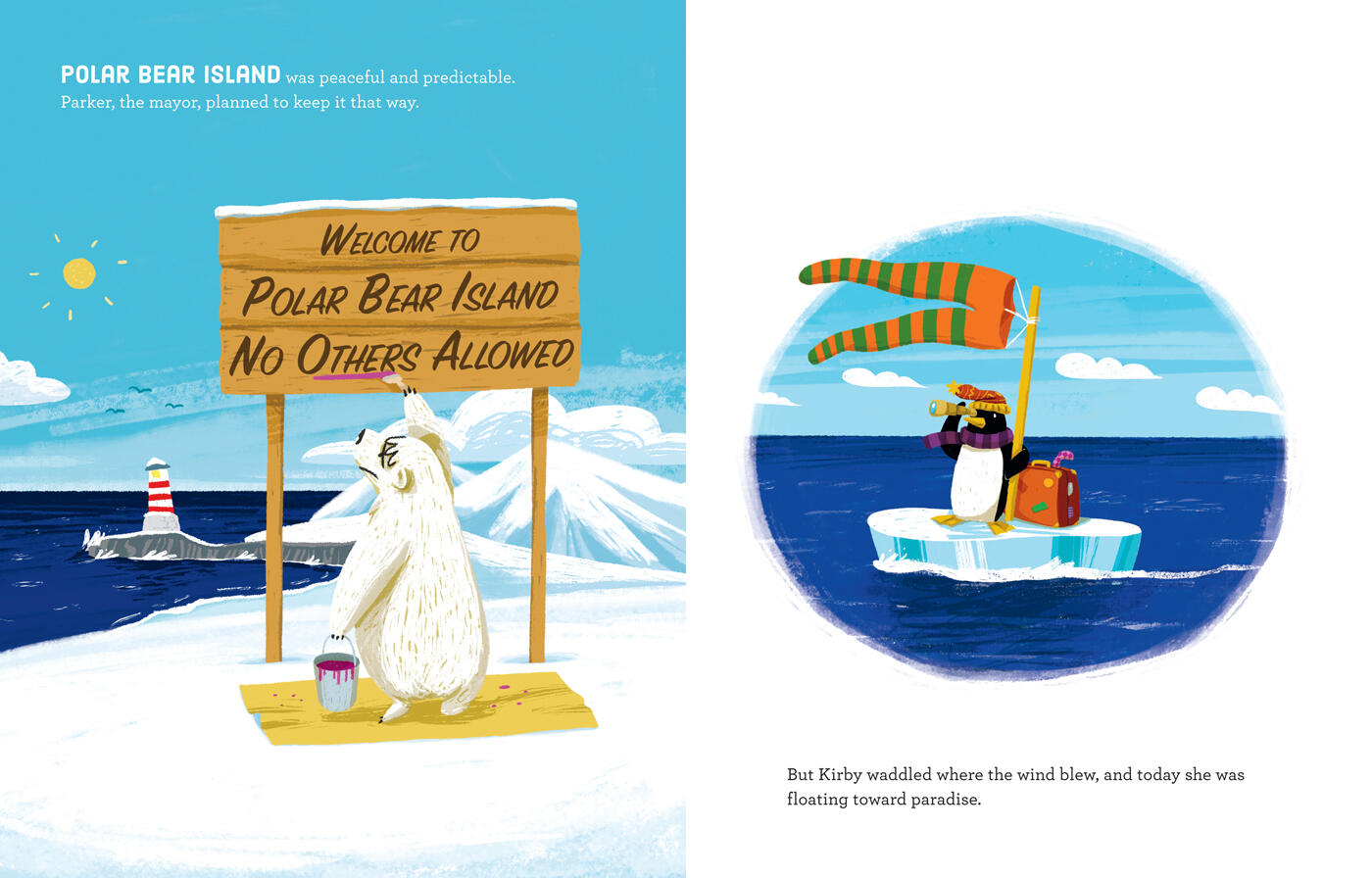 So says Parker, the mayor, eager to keep the island just the way it is. But Kirby, a newly arrived penguin, is shaking things up—much to Parker’s dismay. The other polar bears love Kirby and beg Parker to let Kirby (and her family) move in. Will Parker agree . . . and make the island fun for EVERYONE? With its gentle message of inclusivity, this energetic story is a splash.