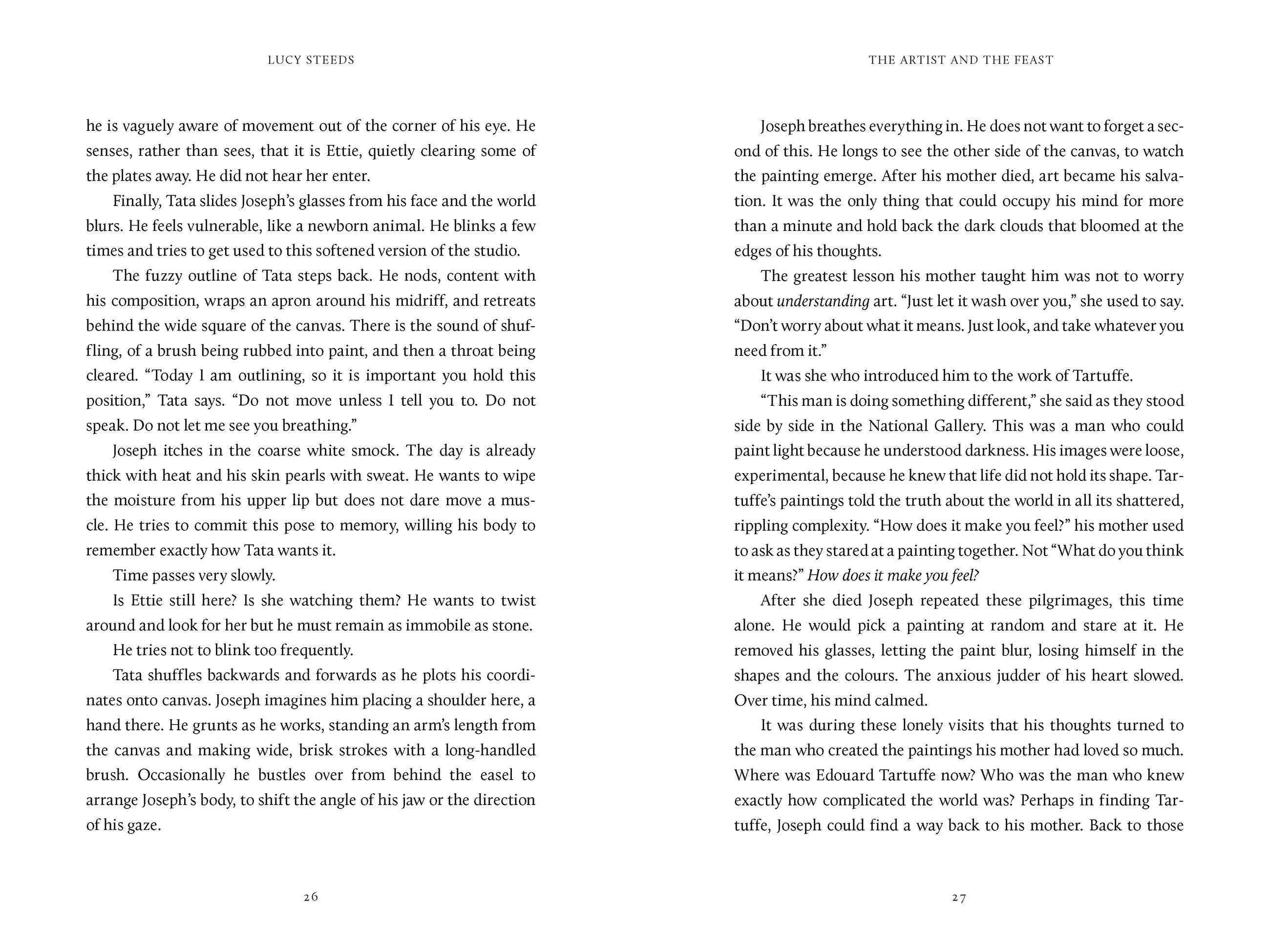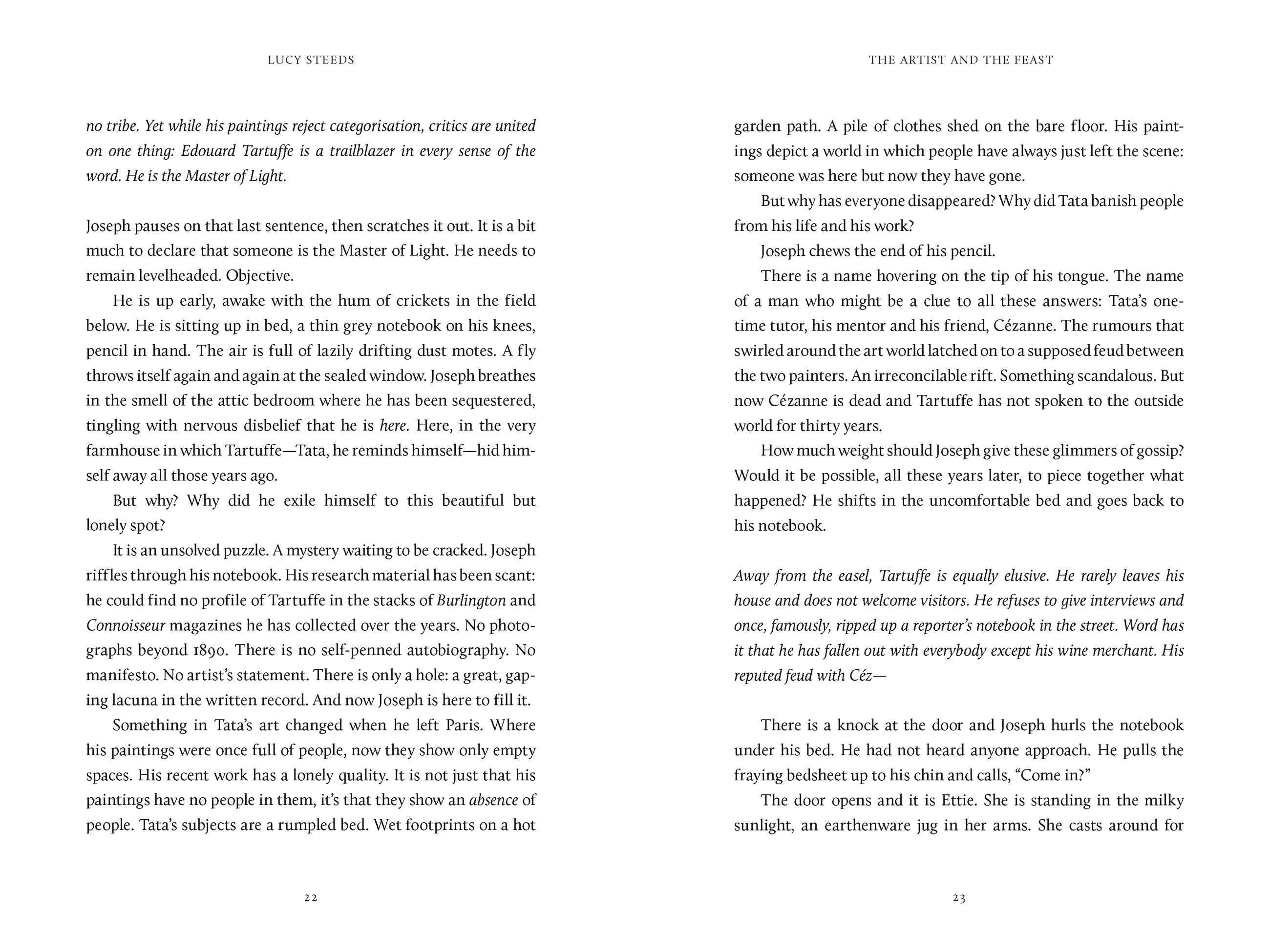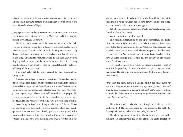 "The Artist and the Feast is a lush, impressive debut; the writing is rich and sensuous, especially in descriptions of food, the landscape and the act of creation. Lucy Steeds, a graduate of the Faber Academy, is one to watch."The Times, Best Historical Fiction of 2025