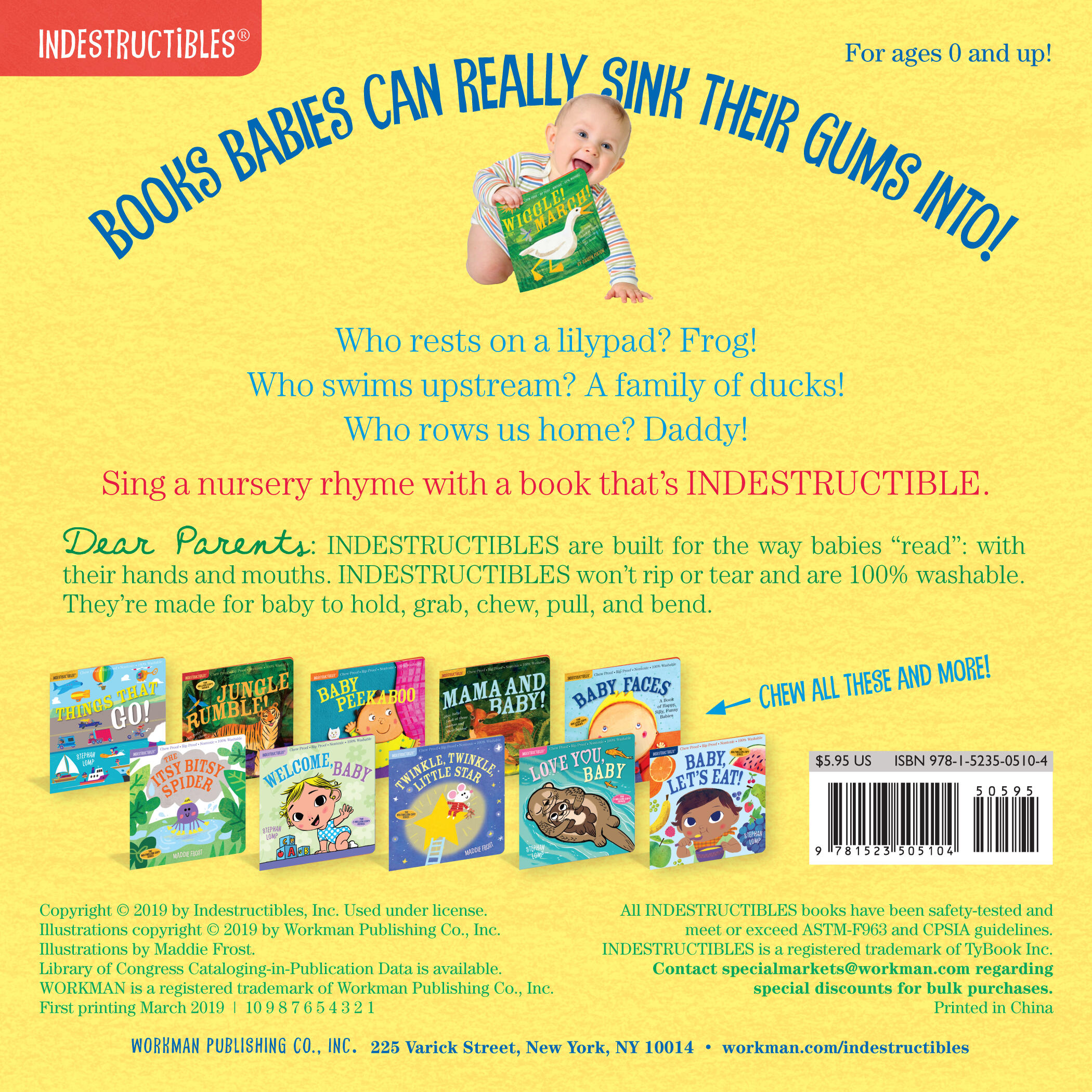 Indestructibles is the trusted series for easing little ones into story time. Beloved by babies and their parents, Indestructibles are built for the way babies “read” (i.e. with their hands and mouths) and are: