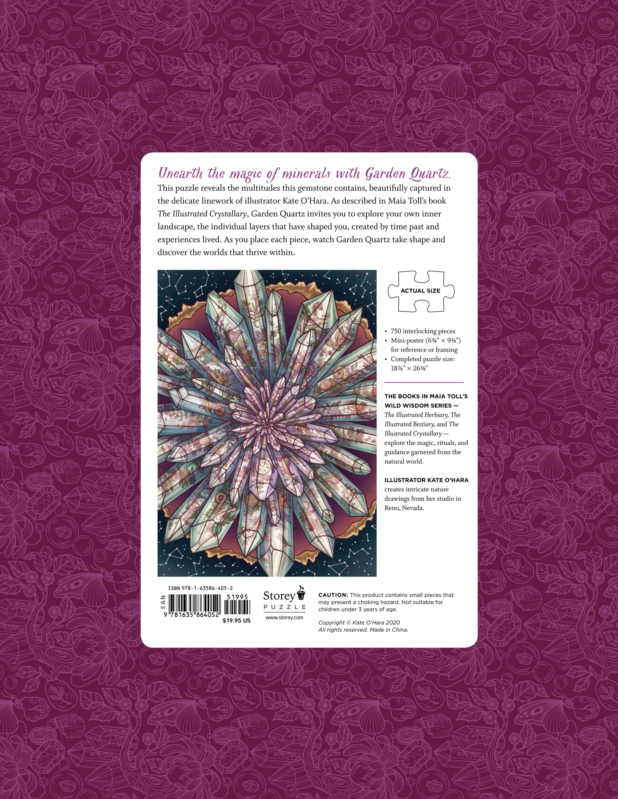 Garden Quartz’s crystalline structure holds evidence of time passed and experiences lived. Through O’Hara’s illustration, this puzzle invites you to explore your inner landscape and see the layers that have shaped you. As you place each piece, watch Garden Quartz emerge and discover the worlds alive within.