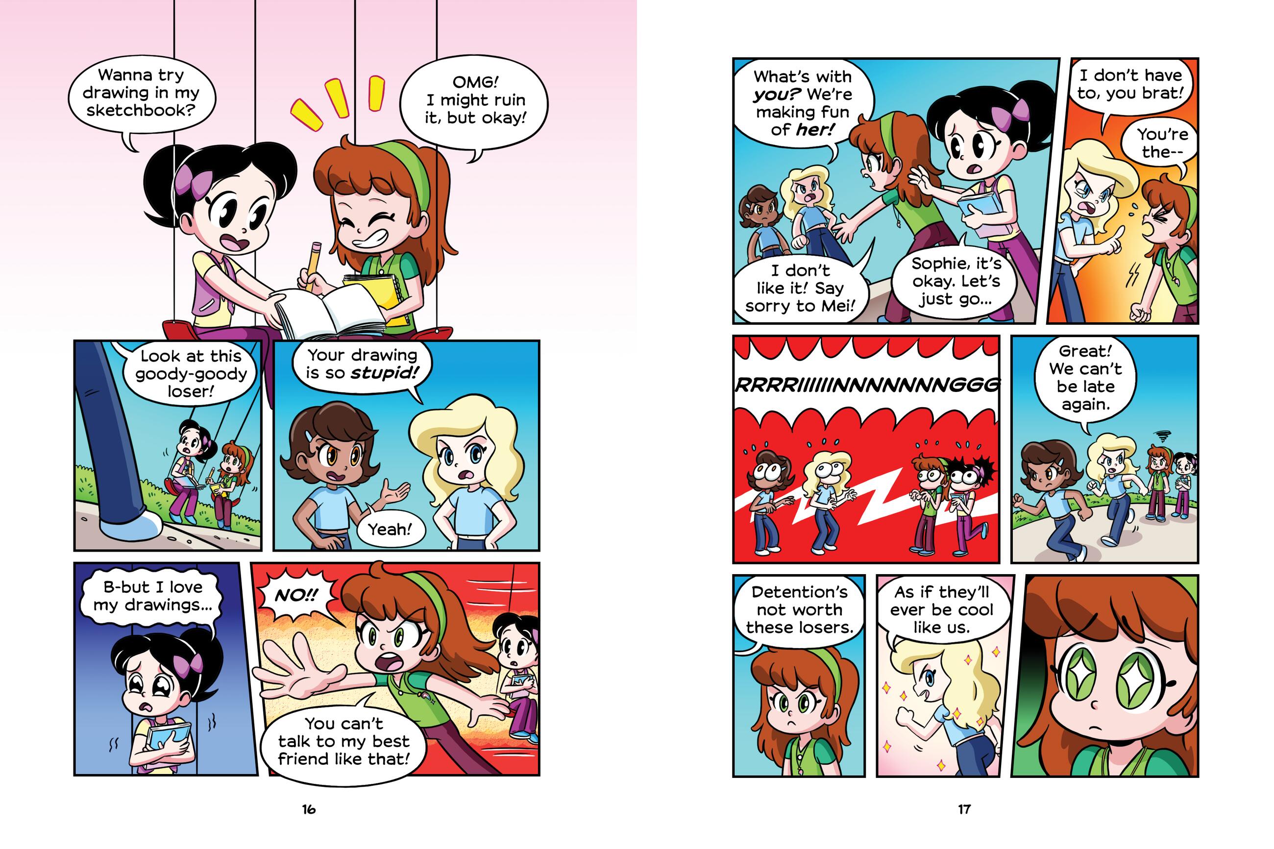 But soon, Sophie behaves very differently. She hates Mei’s art. She calls her hurtful names. She even plays mean pranks on her. What’s going on? Sophie is still Mei’s friend, isn’t she? So why is she now her … bully?