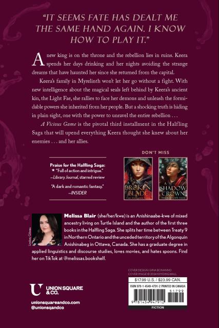 The third entry in the Halfling Saga, the epic tale of a deadly assassin with a mysterious past, set in a lush fantasy world of Mortals, Elves, Halflings, and Fae, A Vicious Game is perfect for readers who enjoyed the A Court of Thorns and Roses series and other romantic fantasy books, especially those seeking LGBTQ+ romance or BIPOC representation.