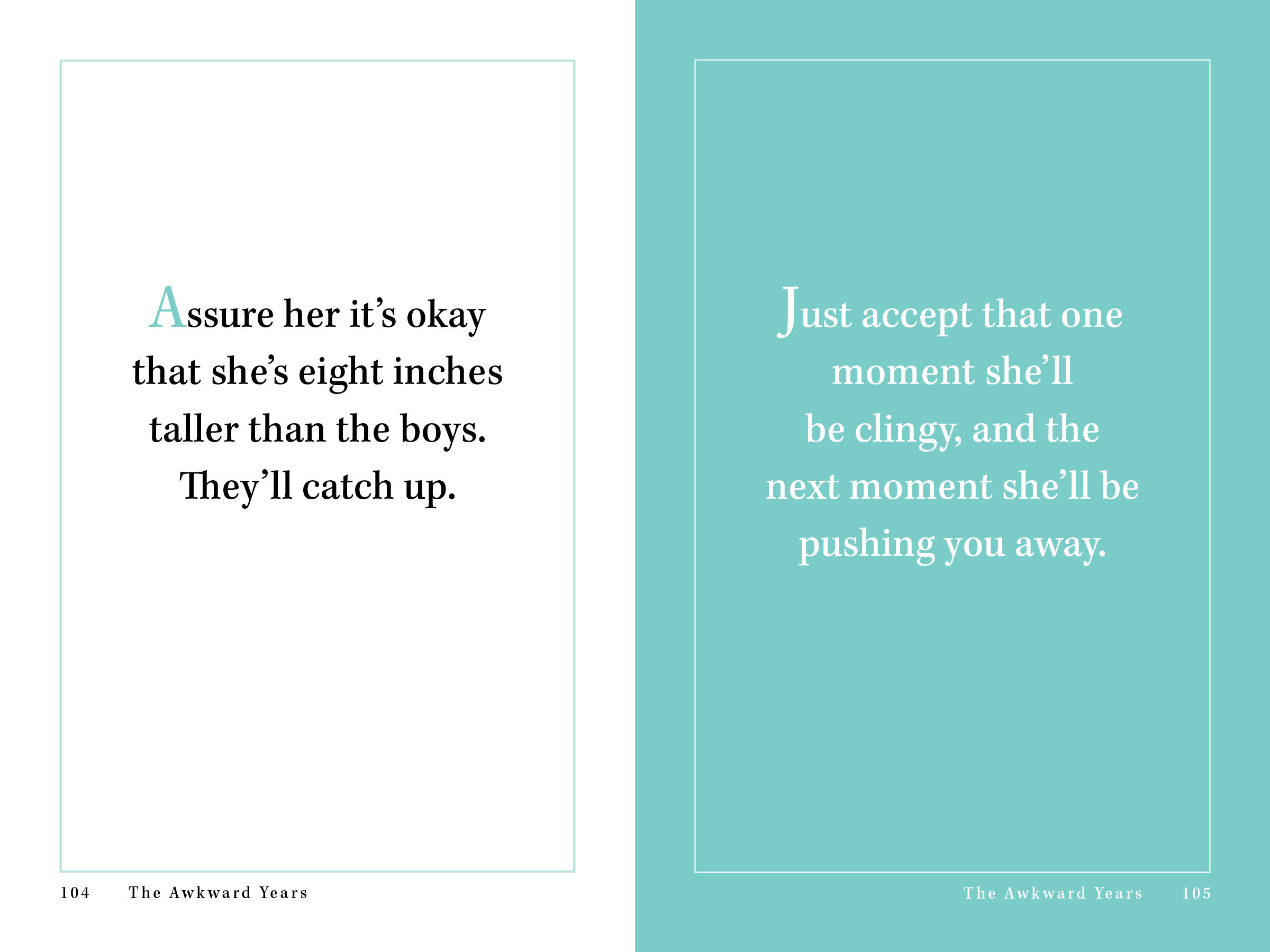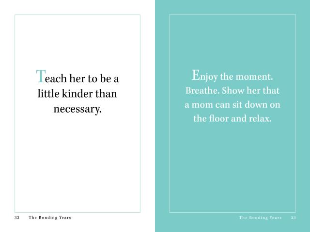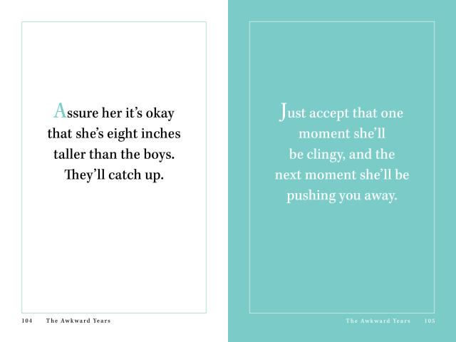 It’s filled with helpful reassurance: Tickle her, play with her, give her piggyback rides. She’s not breakable. And accepting bittersweet reality: When it’s time—Let her go.