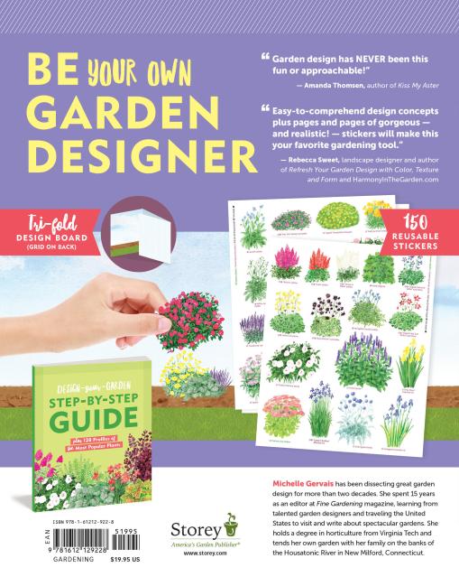“A comprehensive and fun resource for gardeners of all levels of expertise! The easy-to-comprehend design concepts along with pages and pages of gorgeous — and incredibly realistic — stickers are sure to make this a favorite gardening tool.” — Rebecca Sweet, landscape designer and author of Refresh Your Garden Design with Color, Texture and Form and HarmonyInTheGarden.com