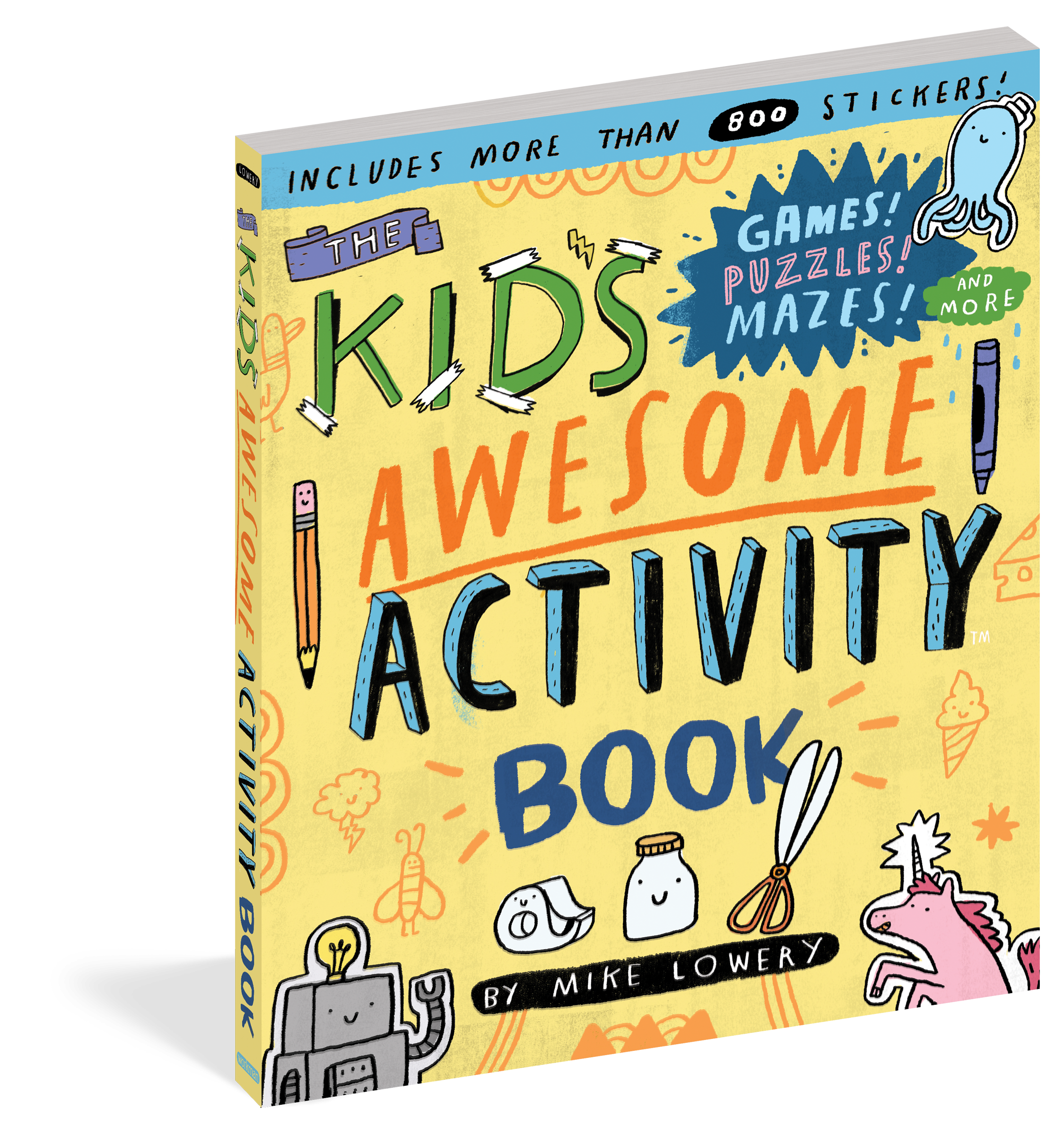 Welcome to the best activity book ever! It is a book filled with PUZZLES, MAZES, WORD SEARCHES, MONSTER JOKES, SCAVENGER HUNTS, AND MORE. Plus plenty of goodies to return to again and again for hands on play, like FINGER PUPPETS and MORE THAN 400 STICKERS. Also BATS, UNICORNS, GNOMES, PIRATES, and even an ALIEN FLIP BOOK. And did we mention MONSTER JOKES? It’s a book to DRAW IN, WRITE IN, COLOR IN whenever you want. Doesn’t matter where you start, either. It’s not that kind of book. Start at the end. Or skip around. In fact, there’s only ONE RULE when it comes to this book. HAVE FUN!