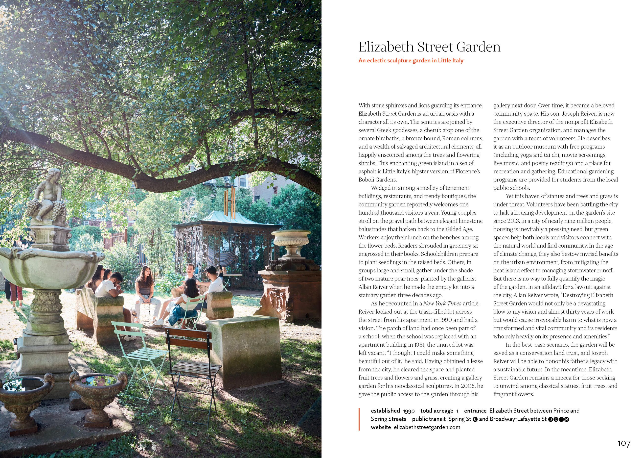 Through Ngoc’s beautifully photographed and well-researched profiles, readers will not only discover parks and gardens they never knew existed, but they will also learn the fascinating history of green spaces in New York and about the innovative new projects being undertaken to ensure we all can enjoy them for years to come. Head up to the nearly century-old Met Cloisters to discover a garden filled with plants depicted in the museum’s medieval art collection, and an herb garden planted exclusively with species known in the Middle Ages. Then travel to Brooklyn to visit the Gil Hodges Community Garden, a tiny oasis along the Gowanus Canal and a critical piece of the city’s green infrastructure: storm water is absorbed, filtered, and diverted to the garden, relieving pressure on the sewer system and thereby protecting the local waterways from contamination. The book features wildlife preserves and community vegetable patches, sprawling old-growth forests and vest-pocket parks of less than five thousand square feet. Each one tells a story, and offers a wonderful refuge from the hustle and bustle of the concrete jungle.
