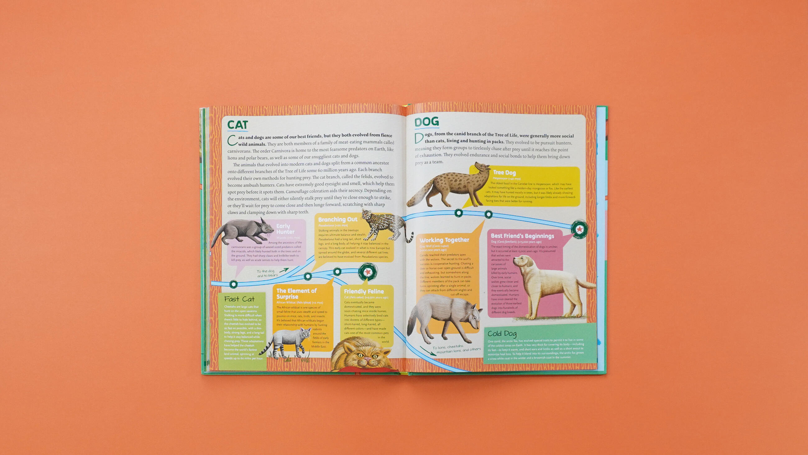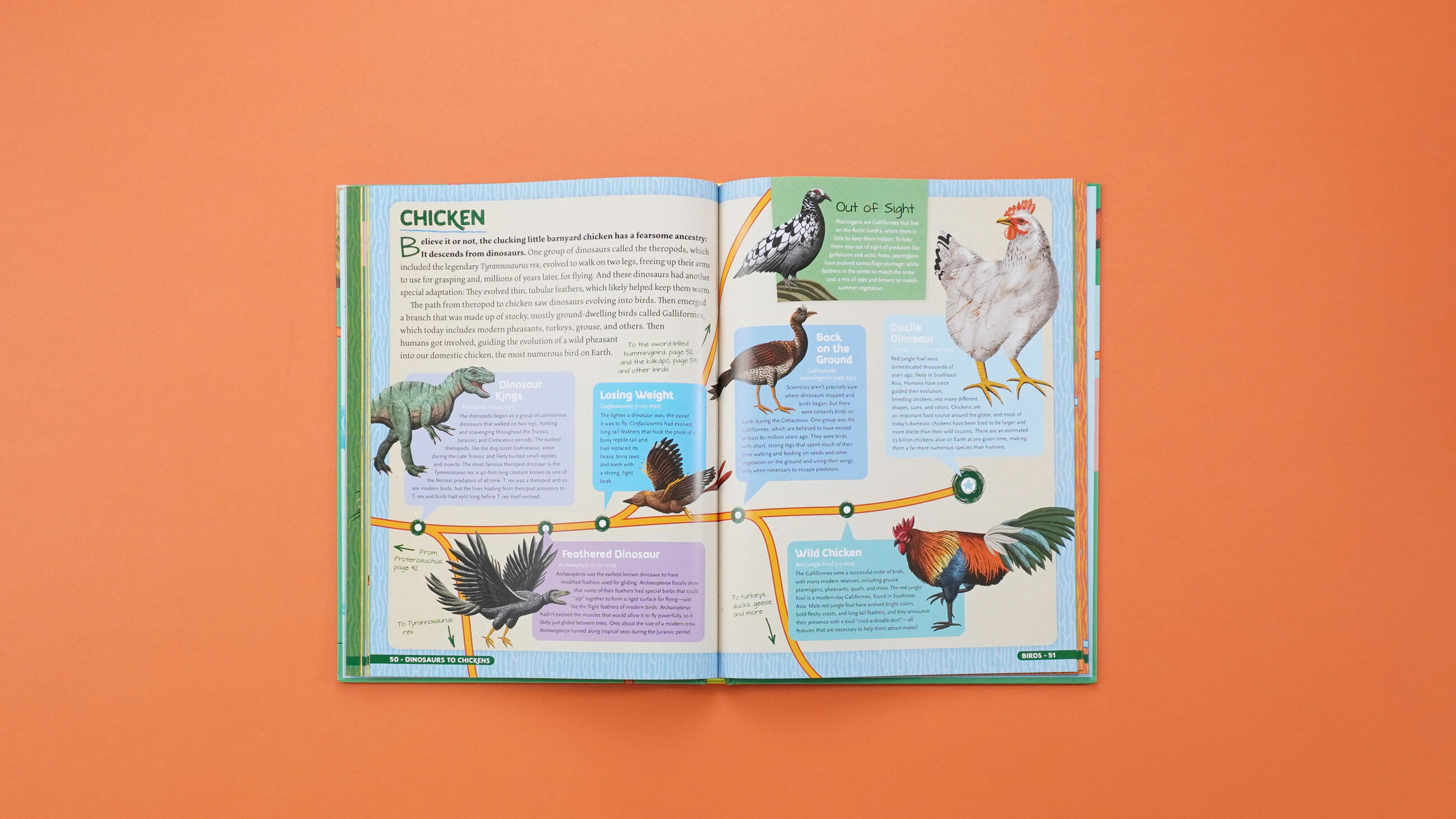 Dinosaurs to Chickens: How Evolution Works showcases over 125 animals in 30 charts that feature most astonishing evolutions in Earth’s history! Track the evolution of traits from the Tyrannosaurus Rex’s to the chicken, the first insect to the monarch butterfly, the giant sloth to the armadillo and many more. With full-color illustrations throughout, plus a gatefold showing how species connect and evolve via the “Tree of Life”, this book makes the science of evolution an exciting and accessible topic for young readers, and will capture the fascination of kids who already love science, dinosaurs and fossils.