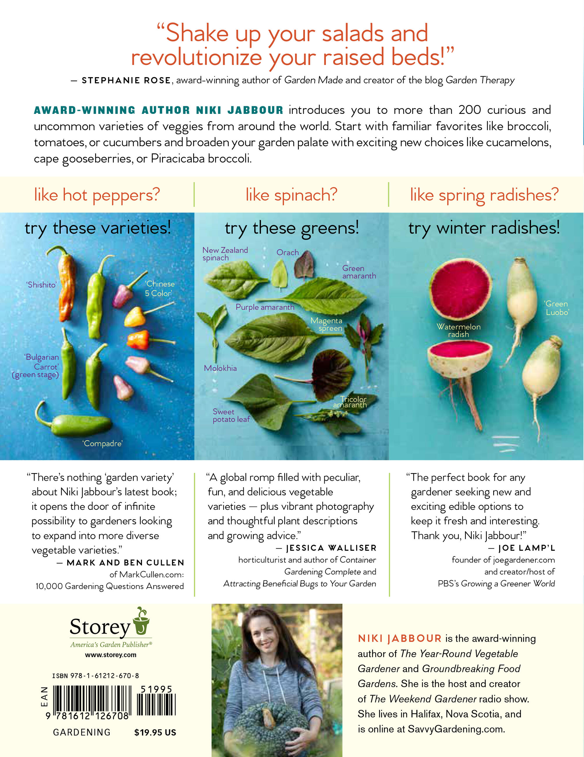 “I love trying new-to-me veggies in my raised beds, and this fresh, vibrant resource gives me bushels of interesting new options.” — Tara Nolan, author of Raised Bed Revolution
