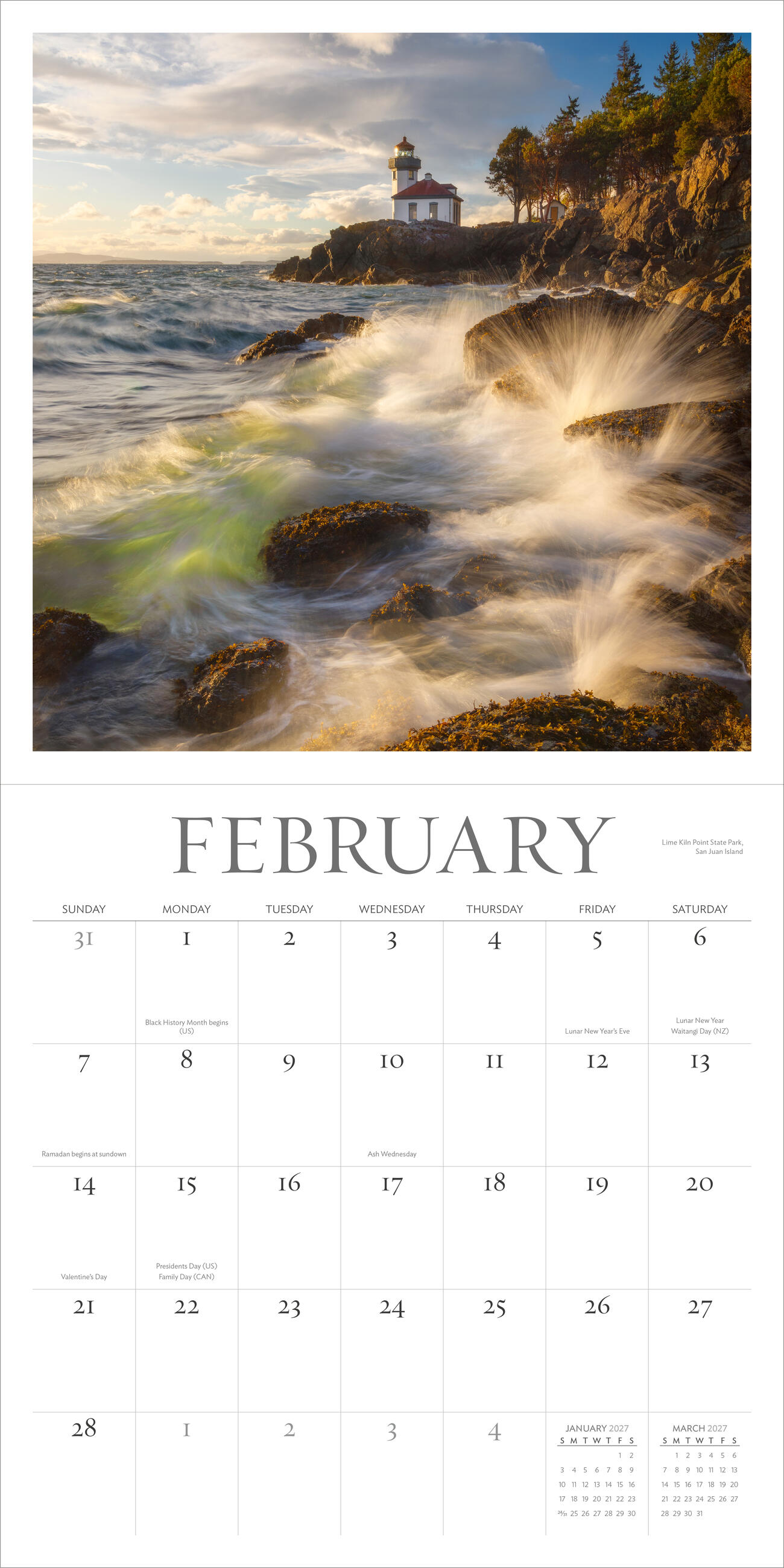 Washington Evergreen Wall Calendar 2027
