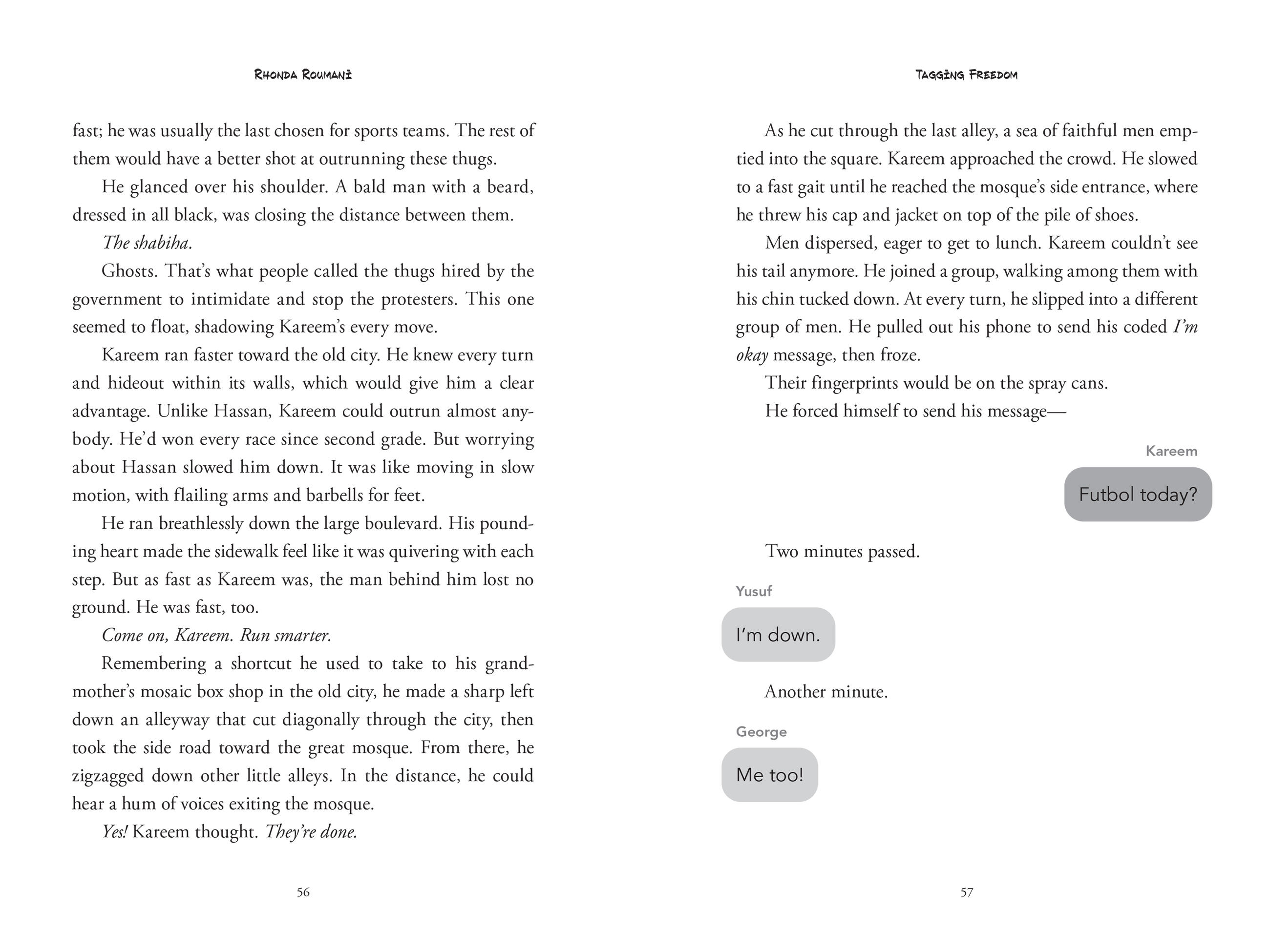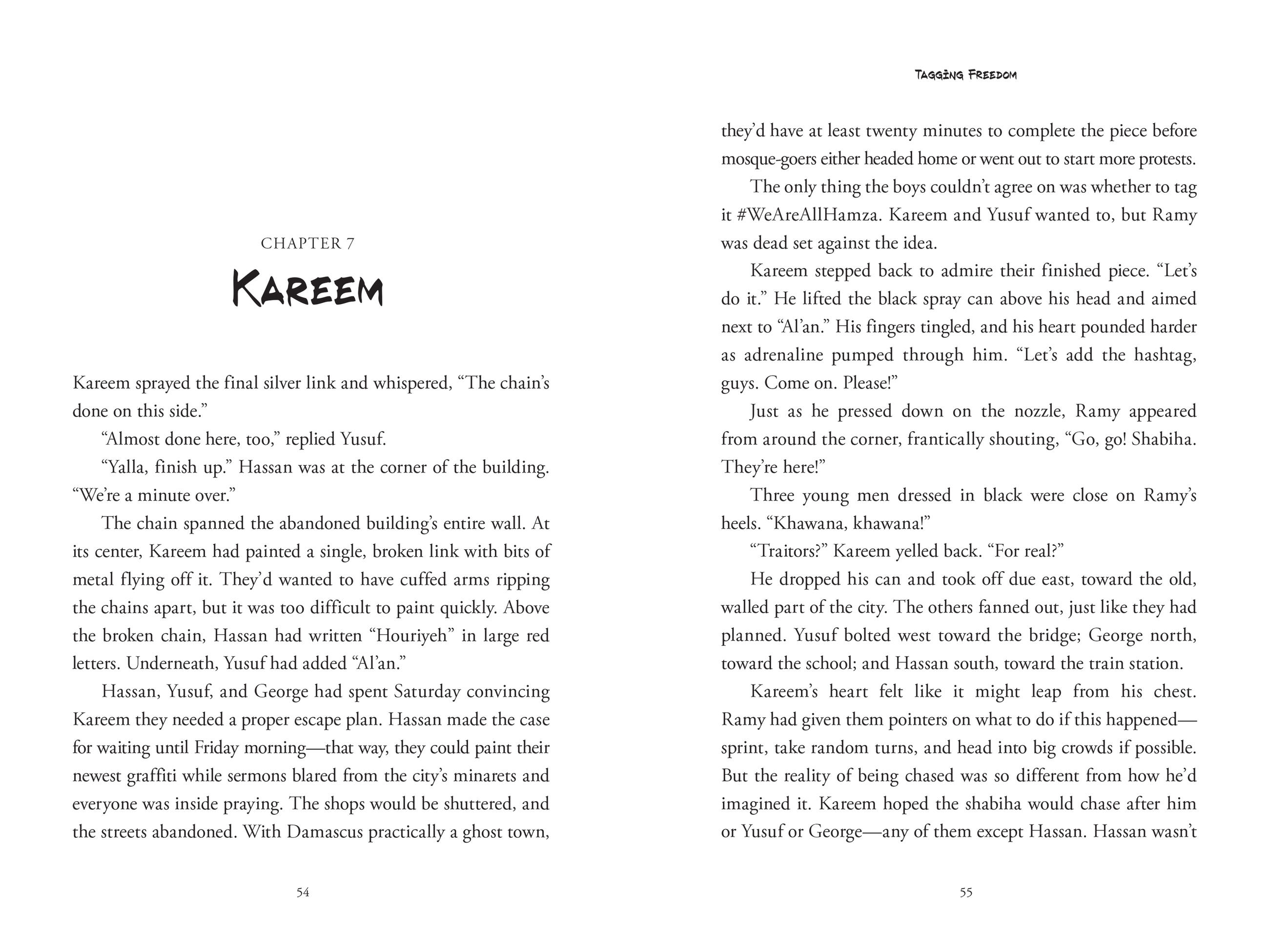 Kareem Haddad of Damascus, Syria, never dreamed of becoming a graffiti artist. But when a group of boys from another town tag subversive slogans outside their school, and another boy is killed while in custody, Kareem and his friends are inspired to start secretly tag messages of freedom around their city.