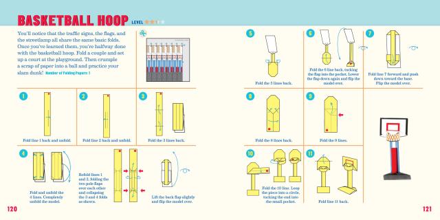 The kit includes 75 models to fold (with step-by-step instructions), 104 sheets of specially printed origami paper with numbers and lines for folding, and a full-color foldout play mat with roads and more.