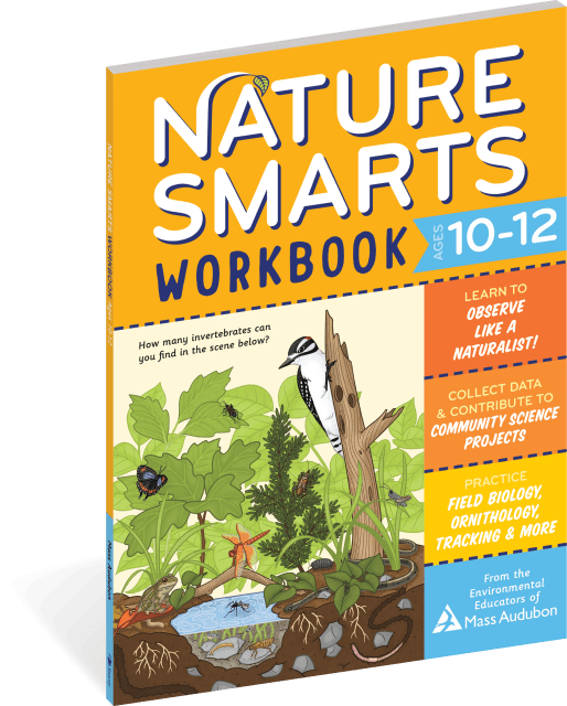 It’s fun to be nature smart! Nature Smarts Workbook, Ages 10-12 builds kids’ skills in field biology, nature observation, and investigation with interactive learning activities. Adapted from Mass Audubon’s acclaimed nature camps, this workbook enhances schools’ nature literacy curriculum with more in-depth lessons on plants, invertebrates, birds, habitats, herptiles, and mammals. Every section also ends with an invitation to be a community scientist and contribute data and observations to the wider effort to better understand our world. Perfect as a weekend enrichment activity, a workbook to stop the summer slide, and a hike or road trip take-along, nature-loving middle schoolers guide themselves through this introduction to key STEM concepts, such as habitat adaptation, plant reproduction, invertebrate anatomy, and phenology. Through outdoor observation experiments like completing a field survey and dissecting a flower, kids study nature wherever they are. And on rainy days, the on-the-page activities let the fun and learning continue with puzzles such as a bird anatomy crossword and games like matching the mammal to their tracks. Hands-on and engaging, this middle school addition to the Nature Smart series of workbooks gives kids the tools to become amateur naturalists and citizen scientists, going beyond the science material usually taught in school to encourage real investigations of the natural world from any backyard or city park.