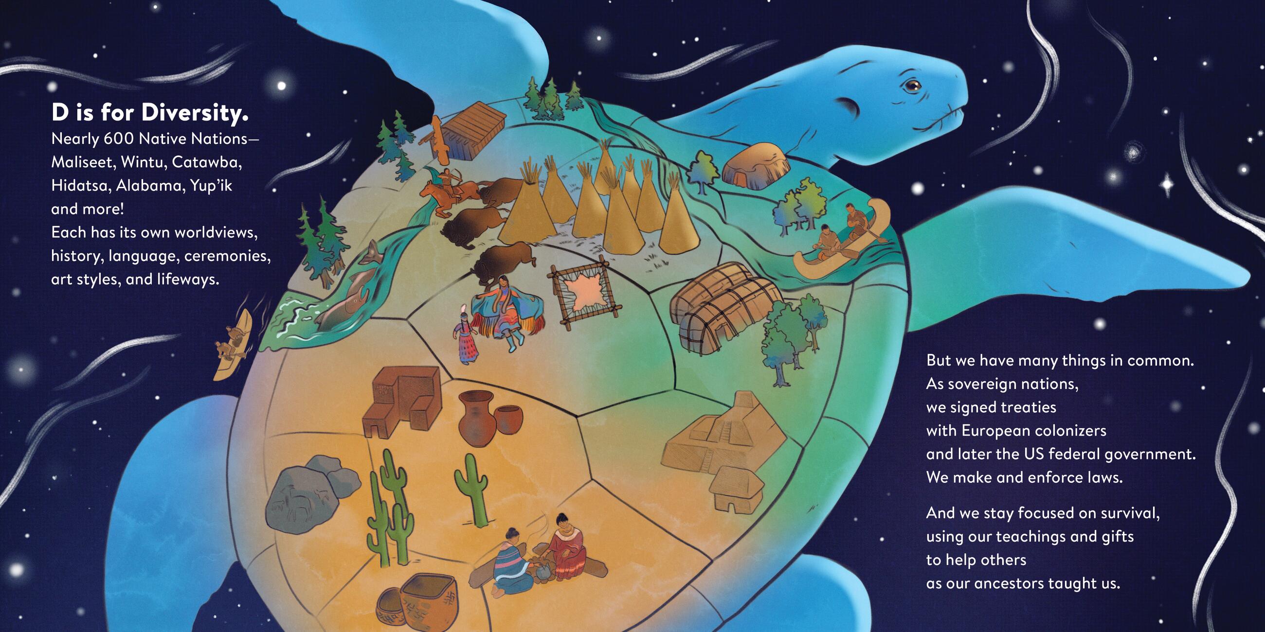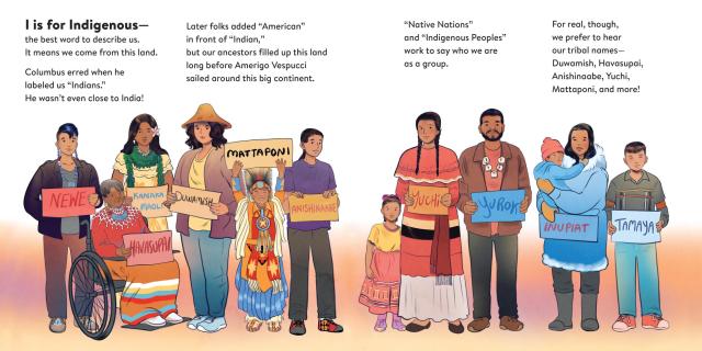 Welcome to Indigenous from A to Z, a stunning alphabetical introduction to the rich history of Native peoples across the USA. Letter by letter, award-winning author Traci Sorell (Cherokee) offers terms that speak to both the vast diversity among Native Nations and the many connections they share, building an essential foundation of understanding for young readers. From the past shown in B is for Before 1492 and C is for Colonialism, to the vibrant culture revealed in J is for Joking and M is for Music, to the dynamic future promised by O is for Organize and R is for Reclaim, this powerful book captures the legacy and living history of Indigenous peoples today. The sweeping illustrations by artist Natasha Donovan (Métis) encompass both the vastness of the changes Indigenous people have experienced and the specificity of individual artists, scientists, and other significant figures. Rich backmatter explains the visual and textual references. The book concludes with a Z to A listing of twenty-six Native Nations, coming full circle to say: