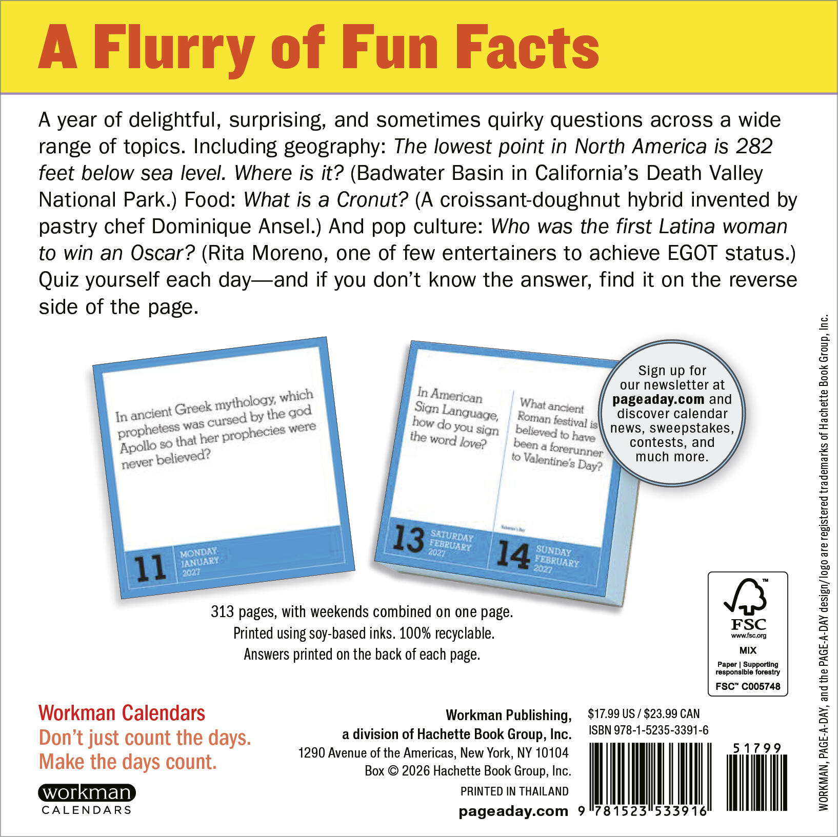 - NOW PLASTIC-FREE!: Page-A-Day® Calendars are environmentally friendly! Printed on responsibly sourced paper and 100% recyclable, with sturdy cardboard backers.