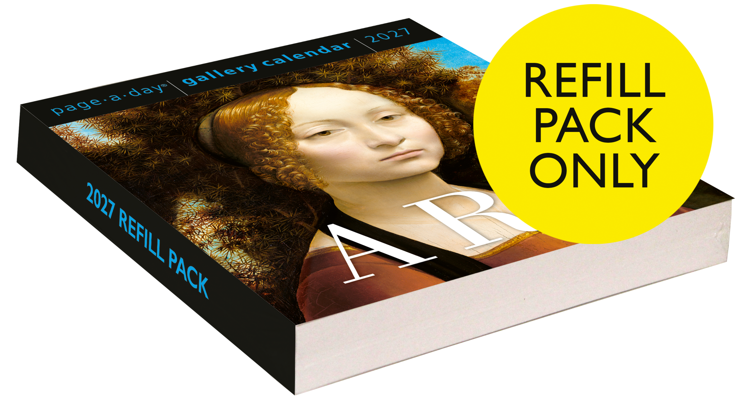 - This is a refill pack for the Gallery Calendar. It includes the pages of the Art Page-A-Day® Gallery Calendar 2027, but there is no plastic backer included.
