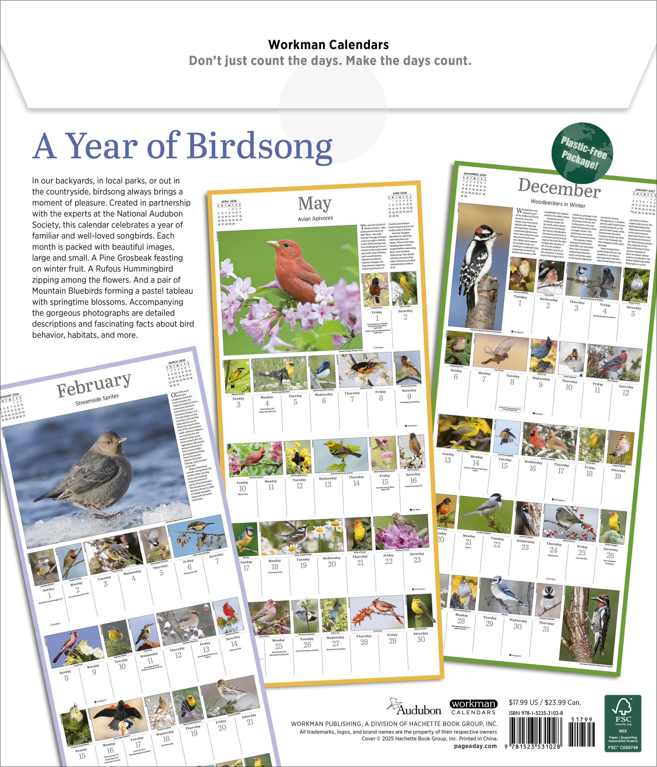- FAMILIAR FAVORITES: It’s always lovely to spot a songbird! Each month features a large full-color photograph at the top of the page plus dozens more in the grid below.